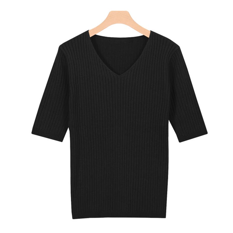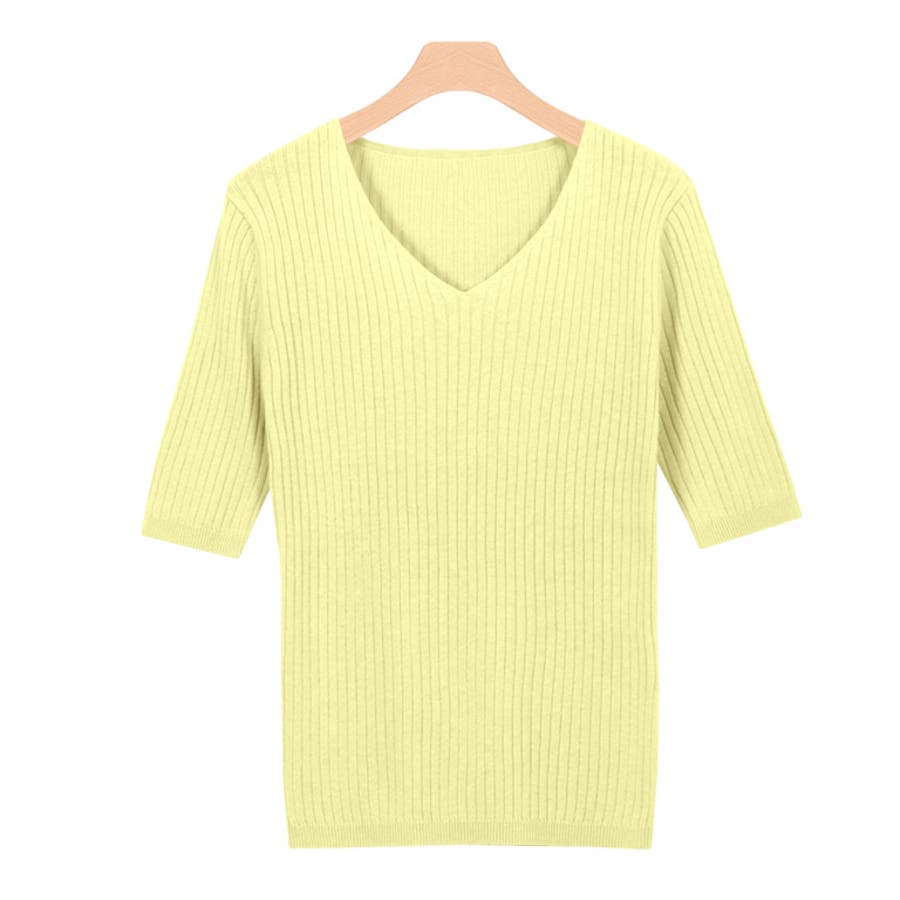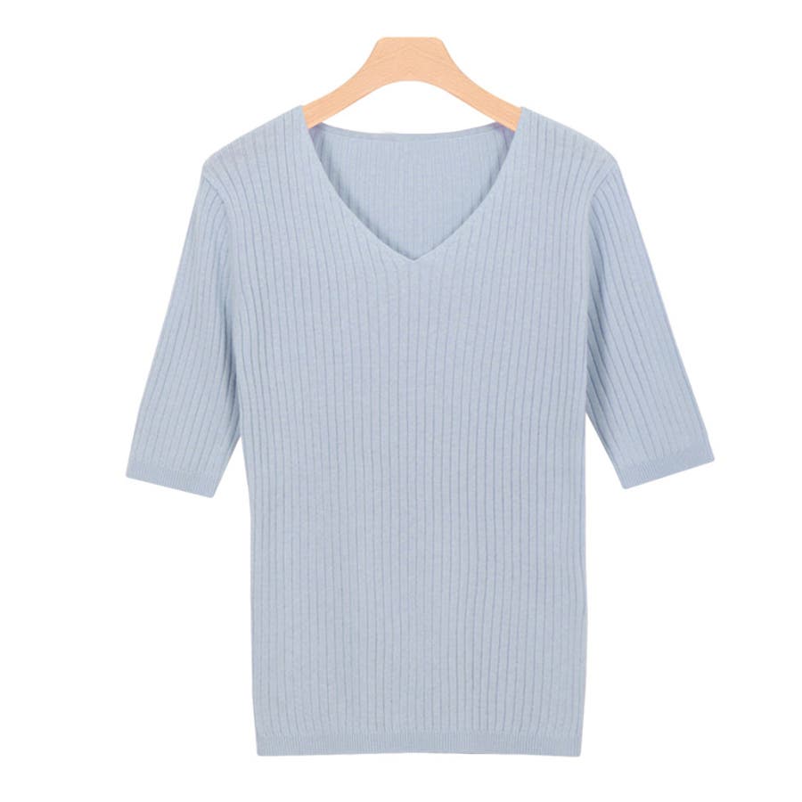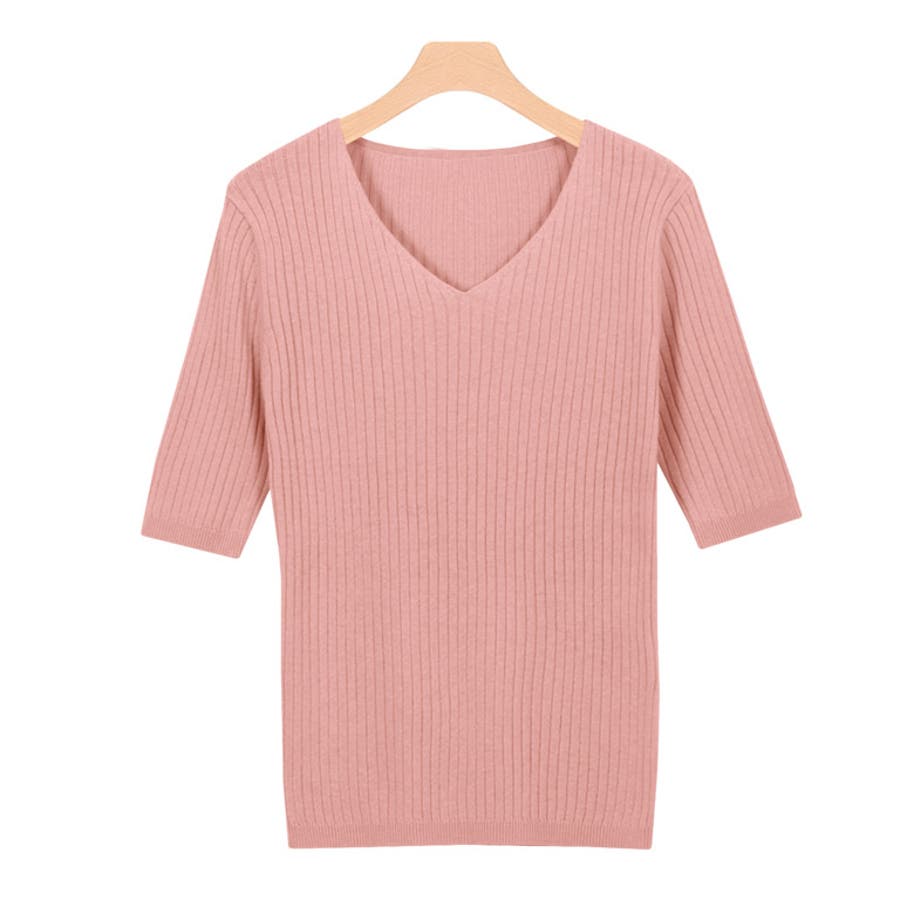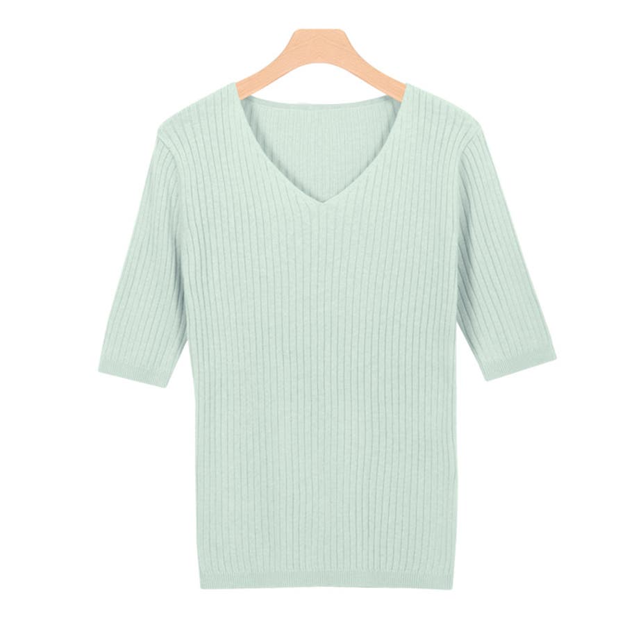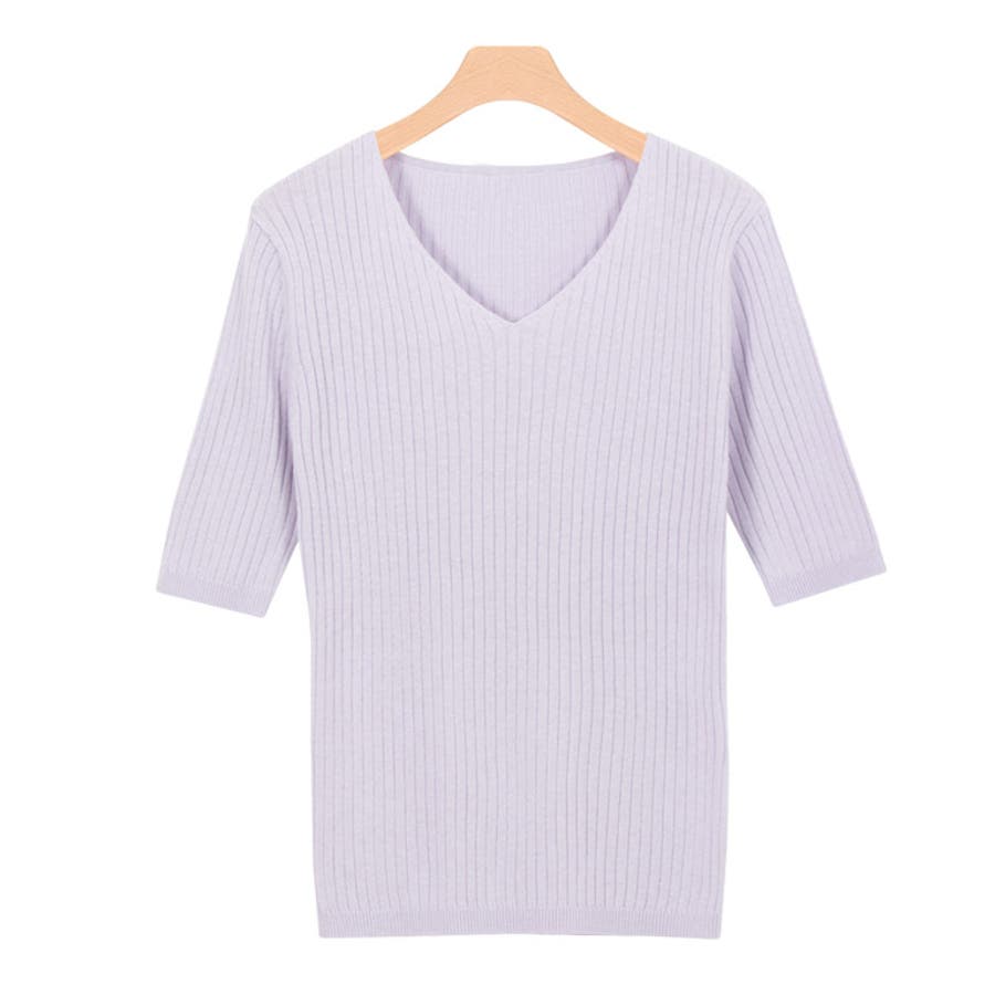選べるネック綿混半袖リブニット リブニット セーター ニット Vネック ボート