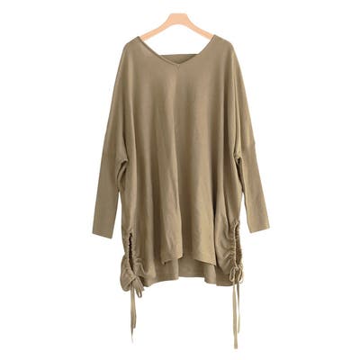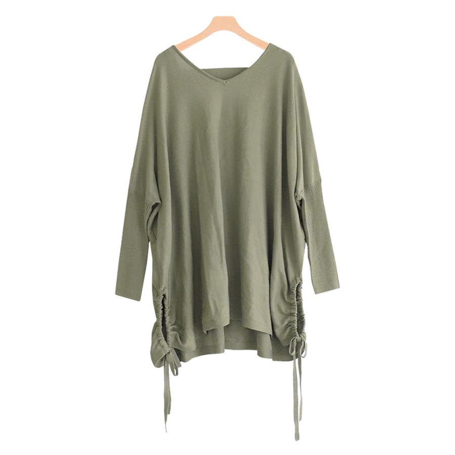 ゆったりしたサイズのドルマンシルエットが、気になる体型をカバーし華奢見えするデザイン。サイドリボンがコーディネートのアクセントに◎