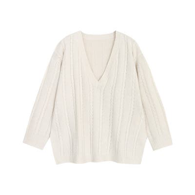 こなれ感のある小さめのケーブル柄にすることで、スタイリングに程よいアクセントをプラスしてくれます。