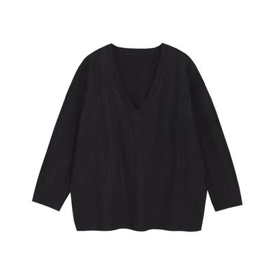 シンプルなカットソーや、タートルネックなどとの旬のレイヤードスタイルが楽しめる一枚。冬の重くなりがちなスタイリングも深めのネックラインですっきりとした印象に導きます◎