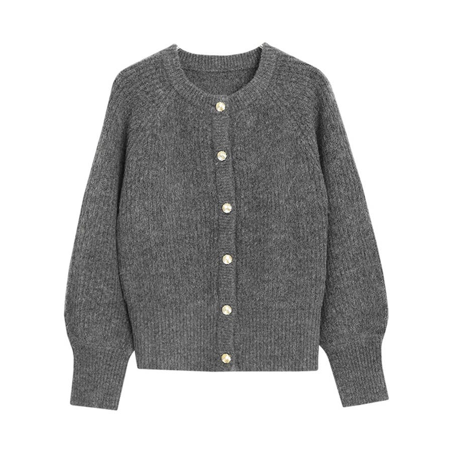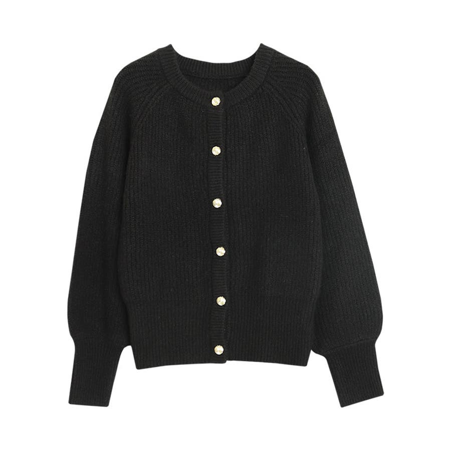 デザインボタンボリュームスリーブカーディガン カーディガン ニット