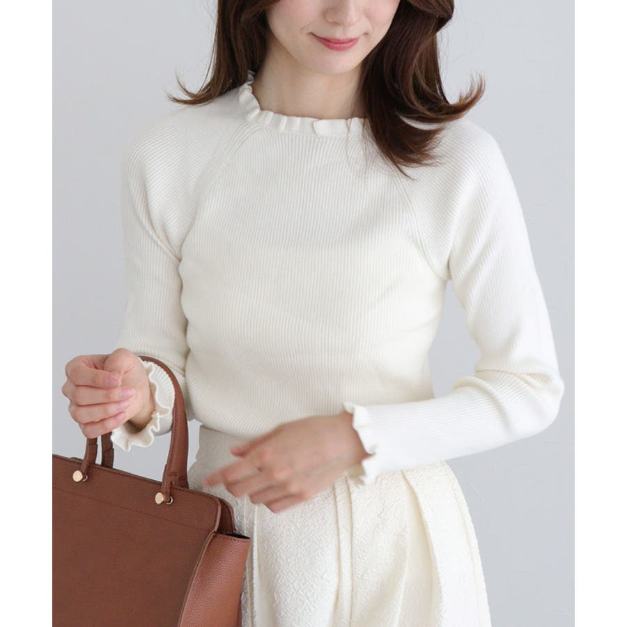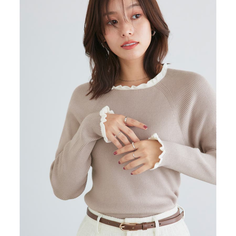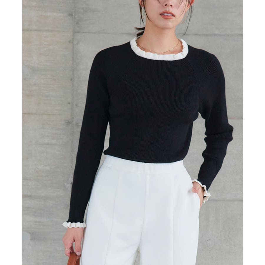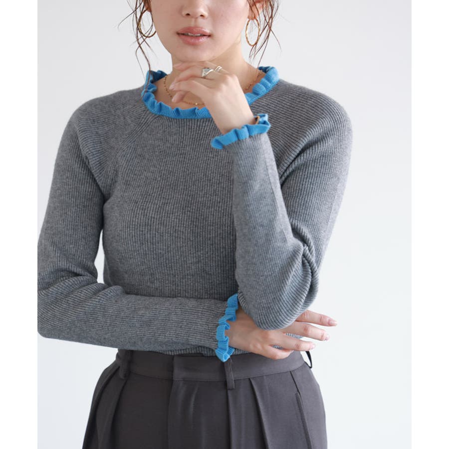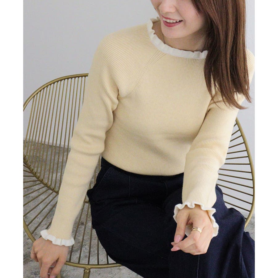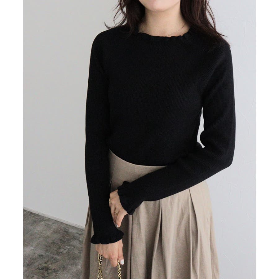 選べるネックフリルリブニット ニット フリル