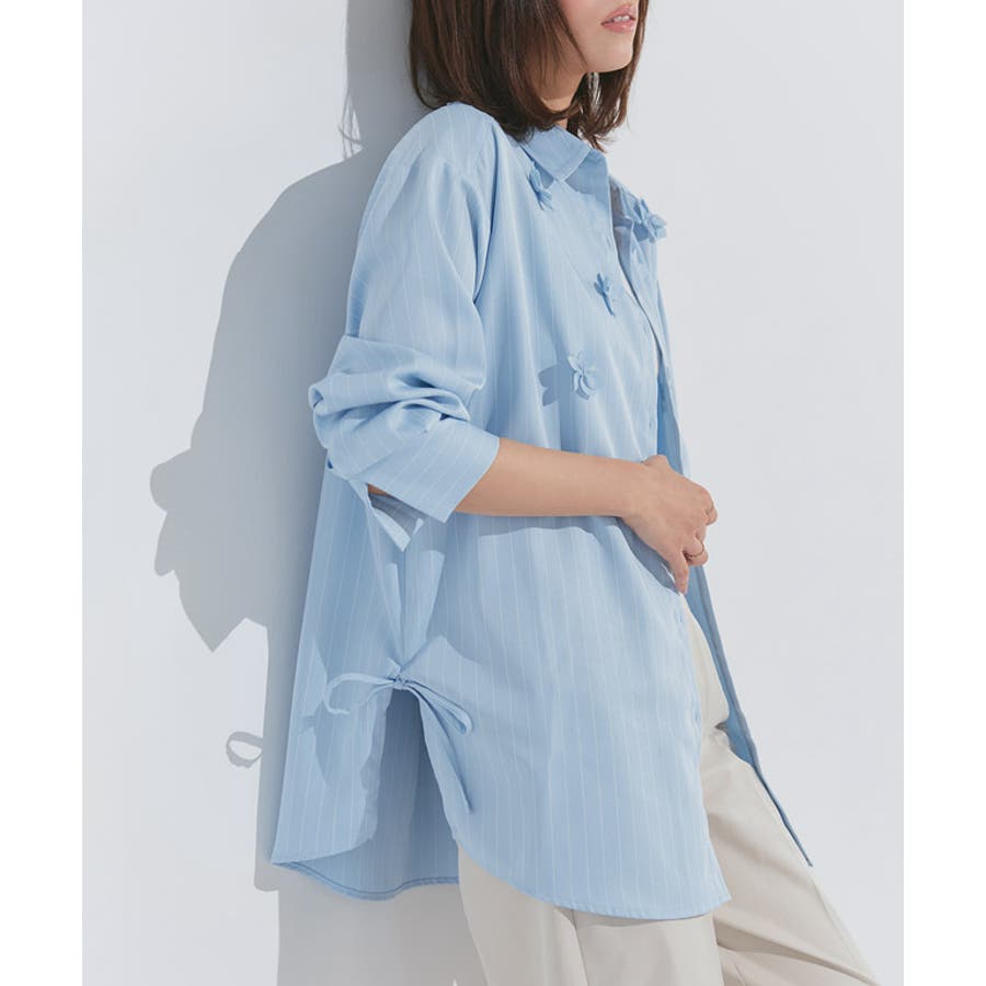 立体的なお花のモチーフが華やかなアクセントになった一枚。シャツデザインに落とし込むことで、甘すぎずカジュアルにも着回せます◎一枚ではもちろん、羽織りとしても長く着られるアイテムです。