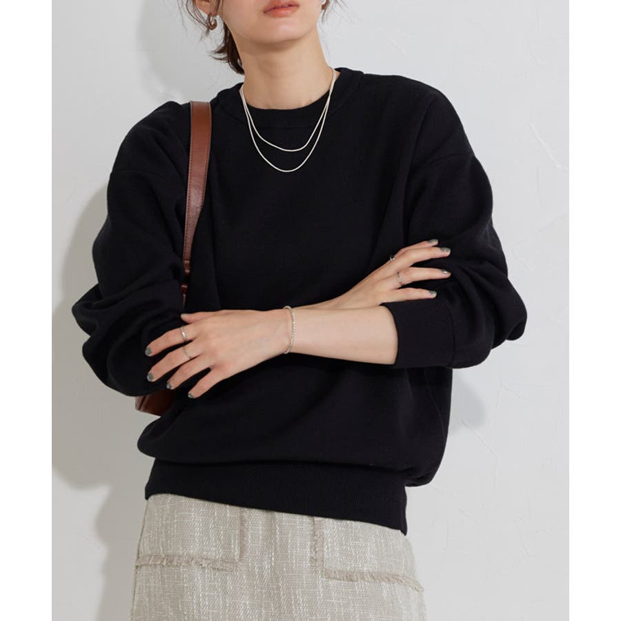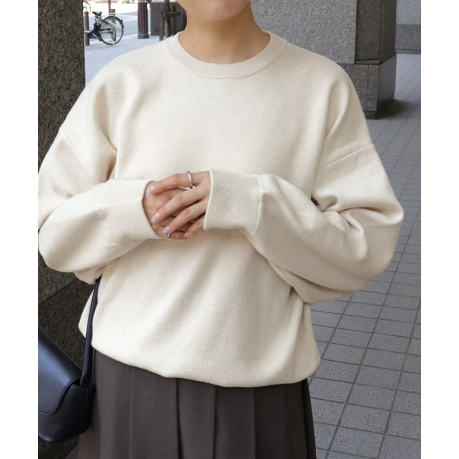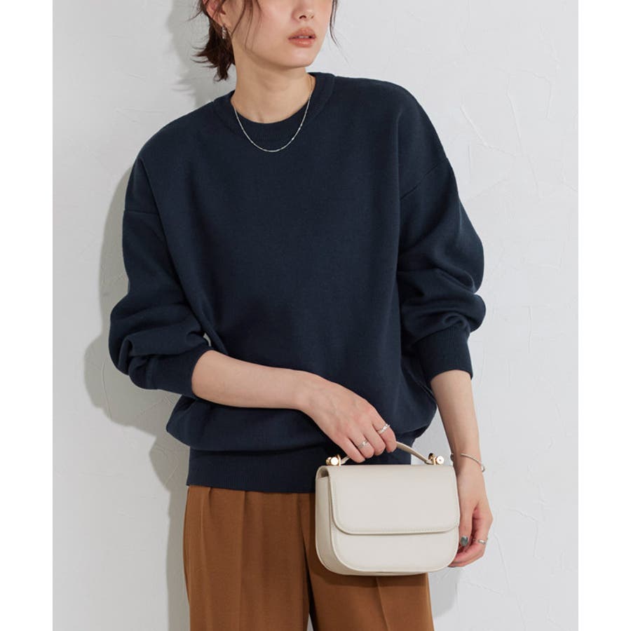 シンプルながらシルエットにこだわった、着映えするベーシックニット。程よく丸みのある立体感が、カジュアルすぎず女性らしい印象を演出します。シャツやシアーインナーとのレイヤードで、大人の抜け感を楽しめるカジュアルスタイルが完成します。