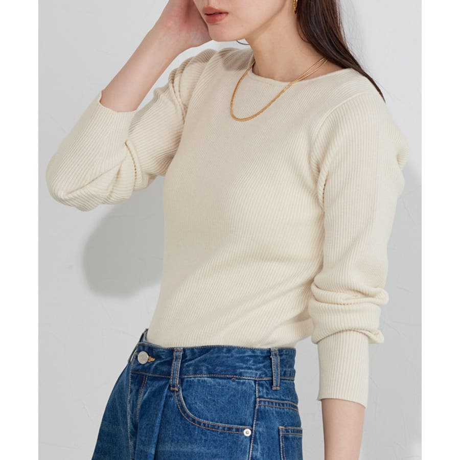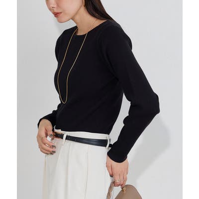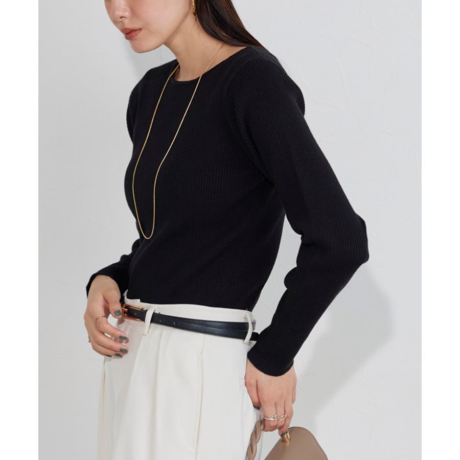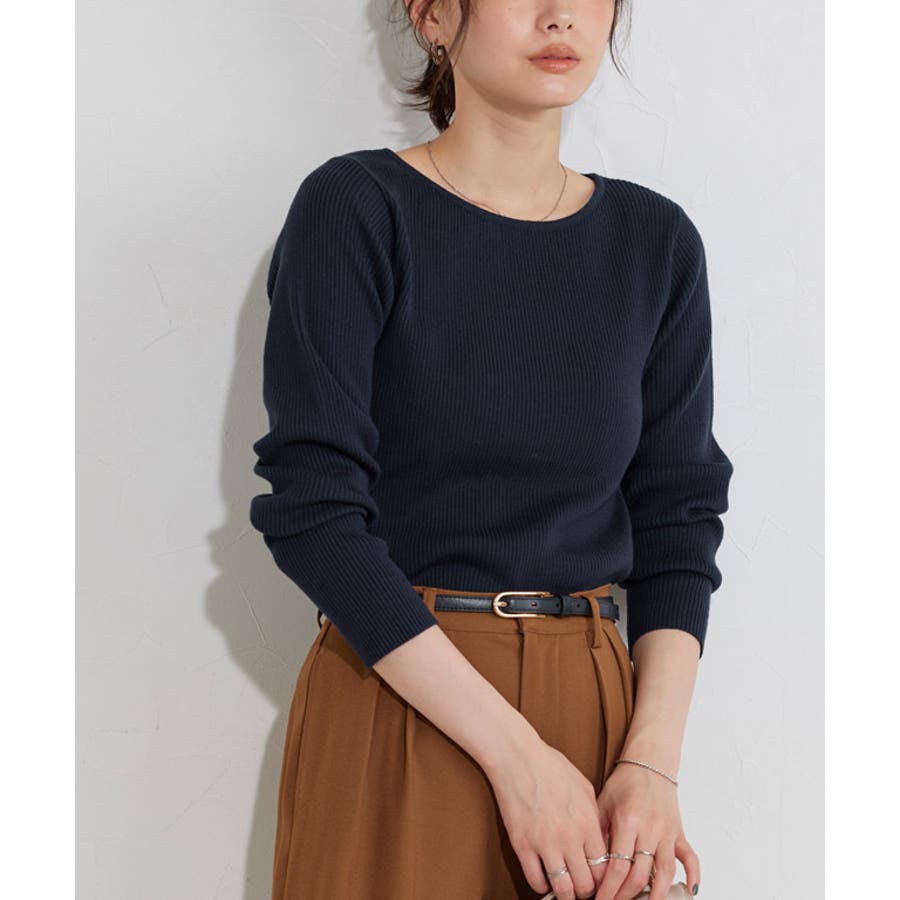 ややゆとりがありつつ、体型をキレイに見せてくれる着回しニット。細かめのリブデザインがすっきりと細見えシルエットを実現します。首元は程よいボートネックで女性らしさをプラスしました。ボトムスを選ばず着回しやすい万能なアイテムです。