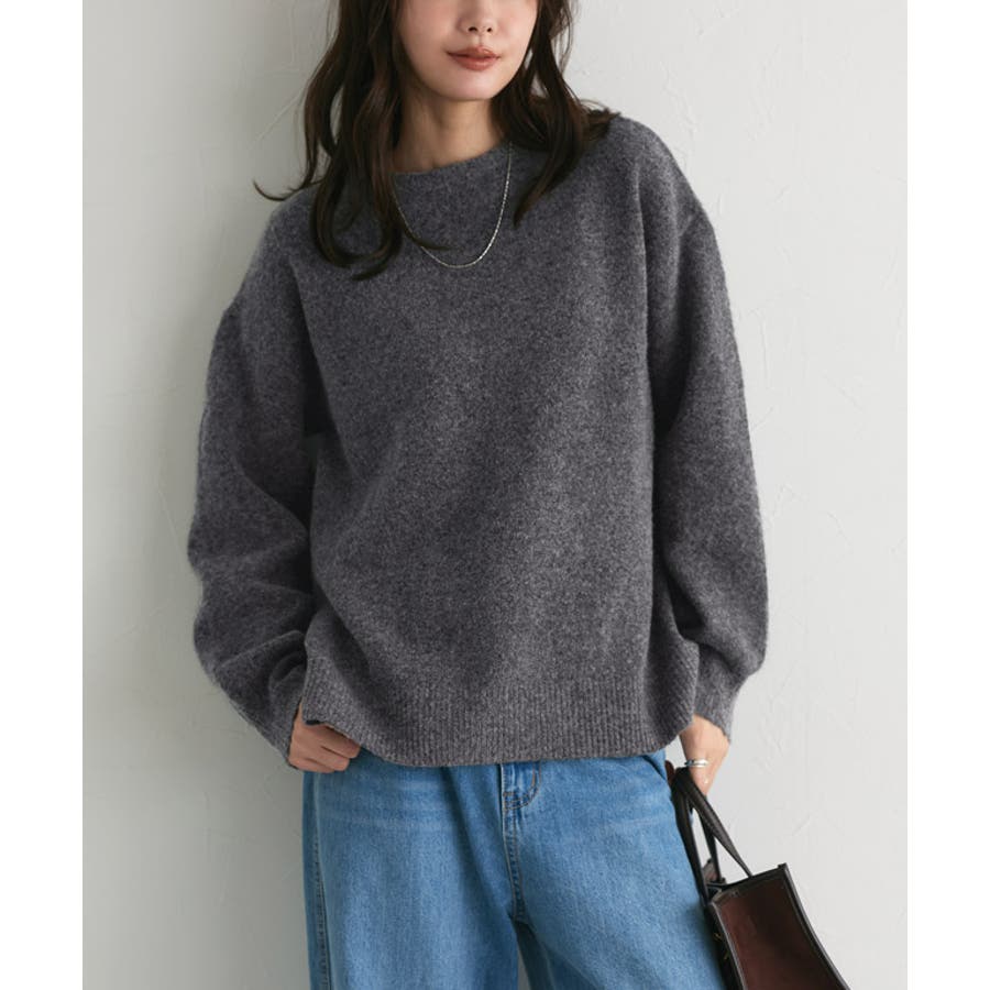 ふんわり柔らかなウールMIX素材を使用したオーバーサイズニット。チクチク感なく軽やかな着心地でアウターとの重ね着もしやすい一枚です。