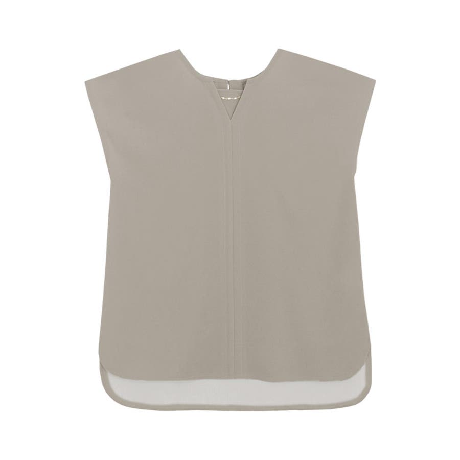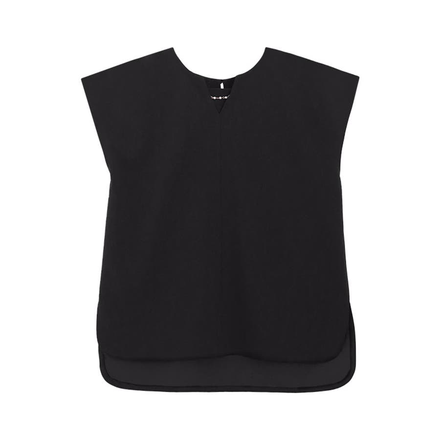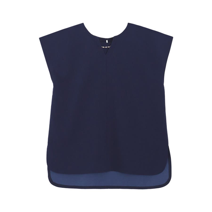 前身頃に施された切り替えラインがこなれたシルエットに。キーネックデザインがデコルテラインをきれいに見せてくれます。パールアクセは取り外しができ、お手入れの際にも安心仕様に。シチュエーションに合わせて取り外してお使いいただけるのもポイント。ON/OFF問わず着用しやすいアイテムです。