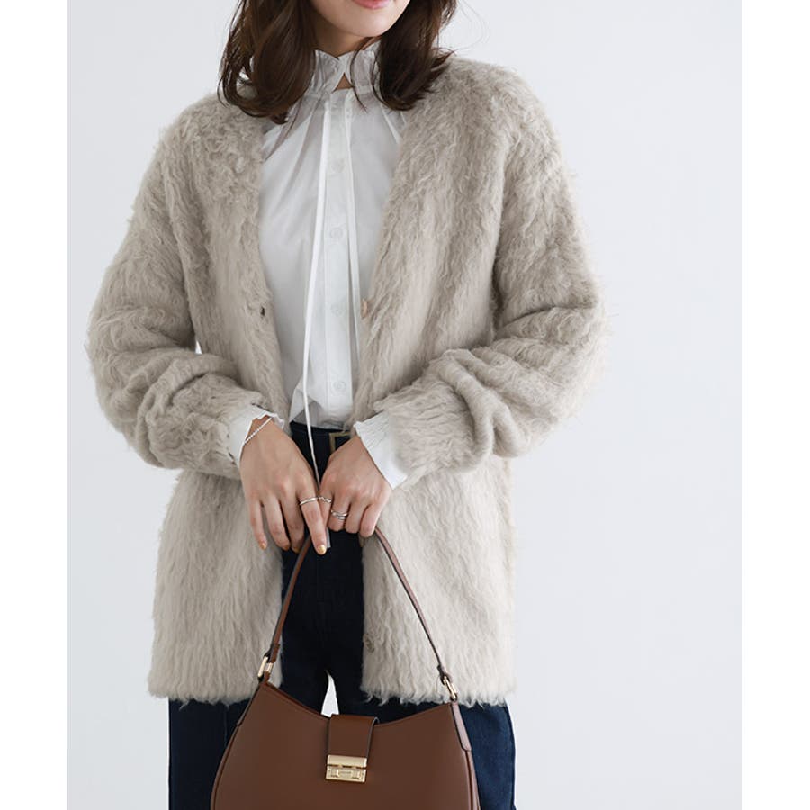 起毛加工を施したふんわりとしたニット素材が存在感がありトレンドライクな一枚。ふわふわの柔らかい肌触りが魅力のニットです。