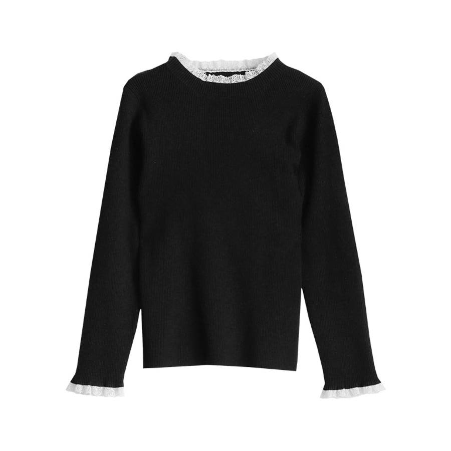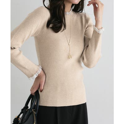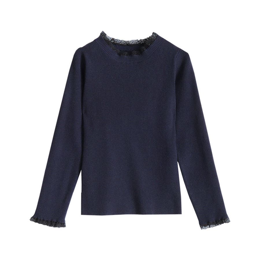 レース付クルーネックリブニット ニット セーター