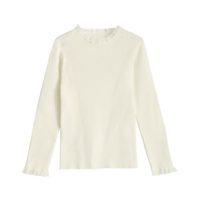 投稿日:2023.05.17襟元と手首の小さめフリルがかわいいです。伸縮性もありとても着やすいです。私には少し丈が長く感じました。インして着用しています。