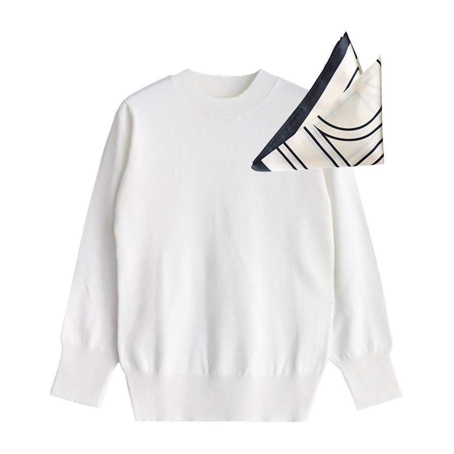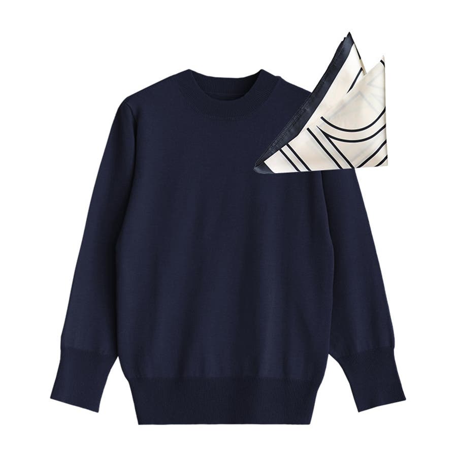 スカーフが大人っぽいスタイリングに仕上げるニットセットアイテムです。シャープなラインがアクセントになったスカーフは、上品ですっきりとした印象に。ニットは単体でも使いやすいシンプルなデザインで、デイリー使いにも最適。シーンやコーディネートに合わせてアレンジが楽しめる一枚です。