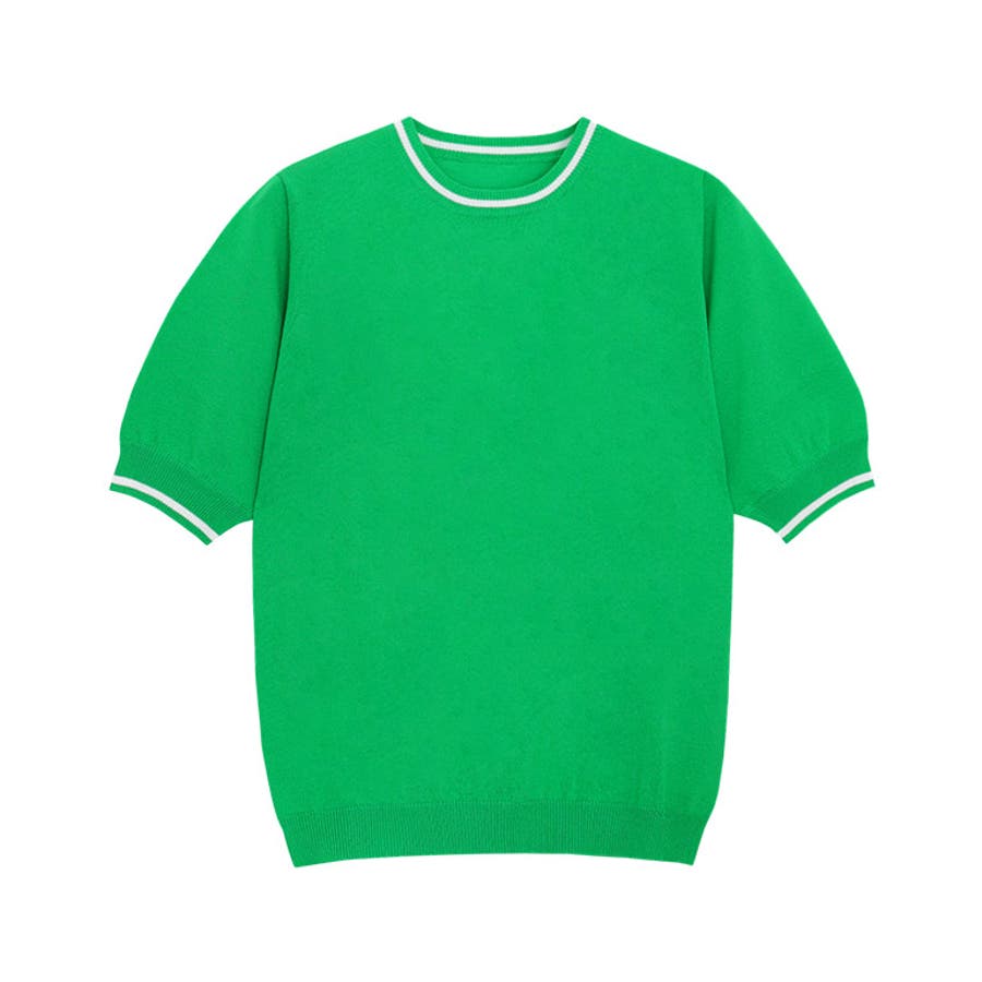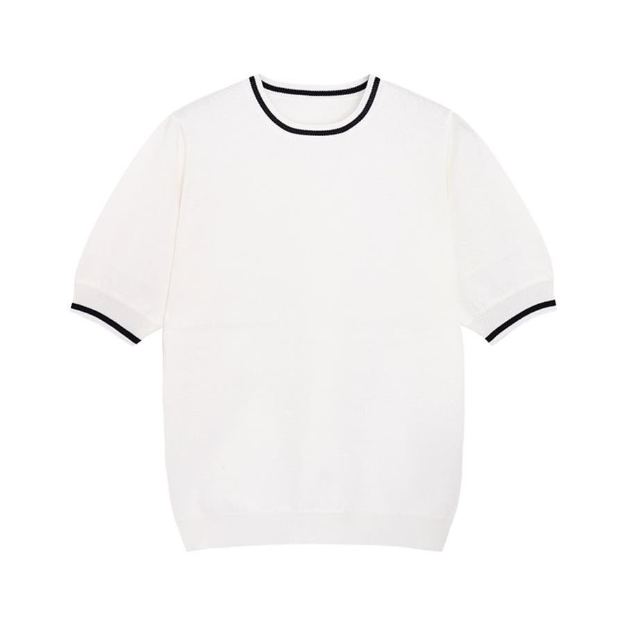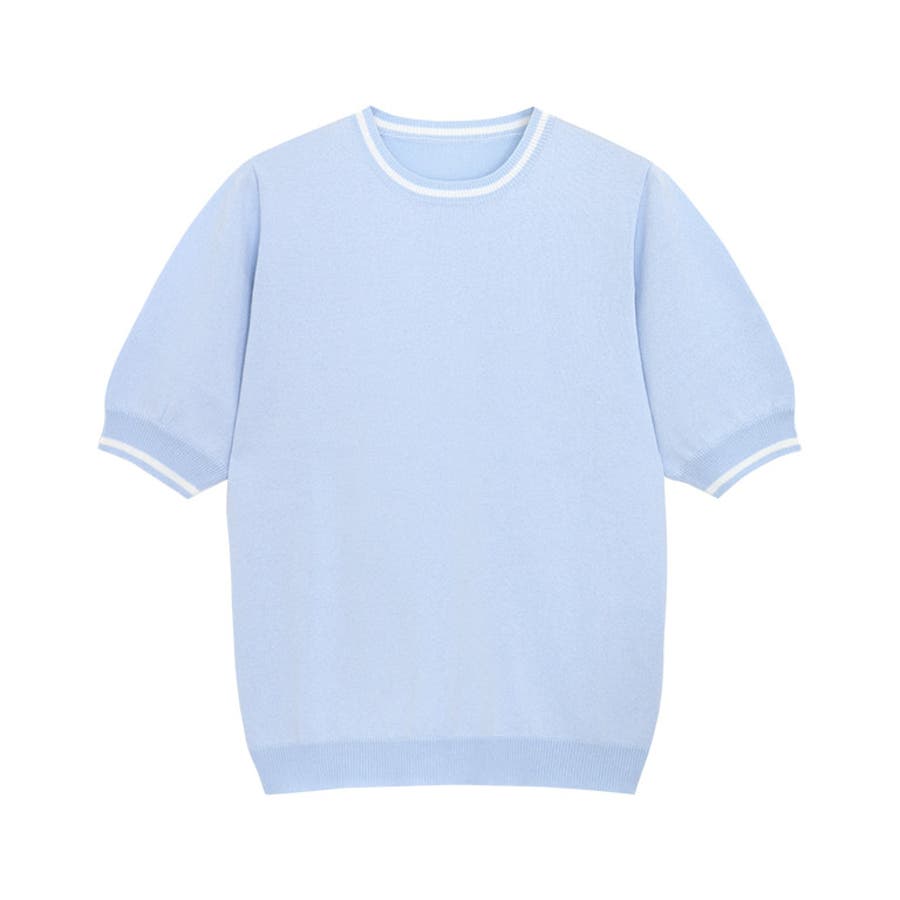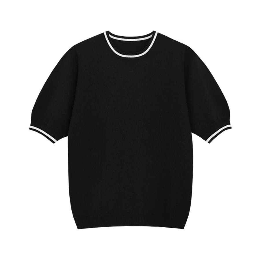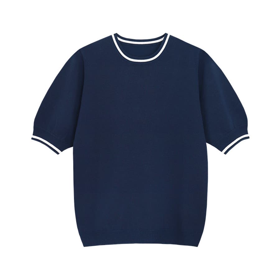 襟元と袖口の配色ラインがアクセントをプラスしてくれるデザインニット。インナーとして着用しても首元のラインがおしゃれな雰囲気に。丸みのあるパフスリーブが二の腕をカバーしつつ、女性らしさ漂う一枚。トレンドスタイルからきれいめスタイルまで、幅広く着回せるアイテムです。