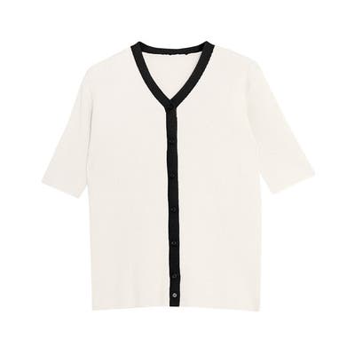 すっきりと見せてくれるVネックで、配色が程良いアクセントになり、ON/OFF問わず着用していただけます。羽織としてはもちろん、トップス風としての着用もおすすめです。