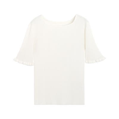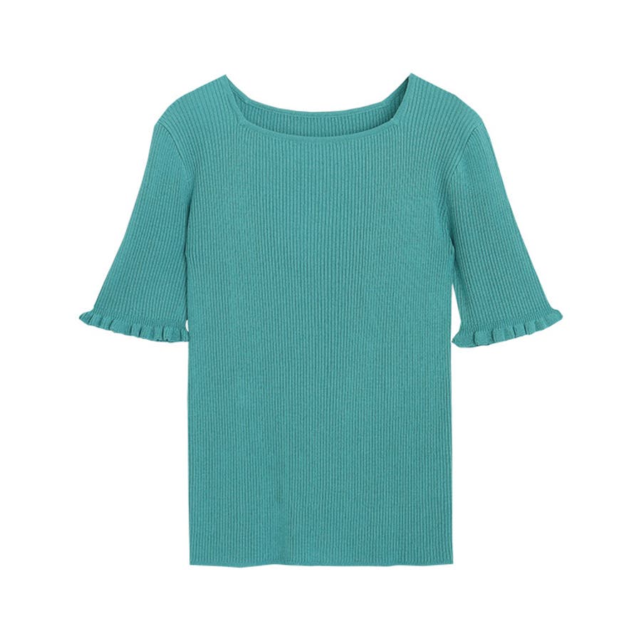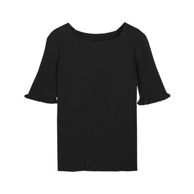 リネンタッチ袖フリルリブニット ニット リブ