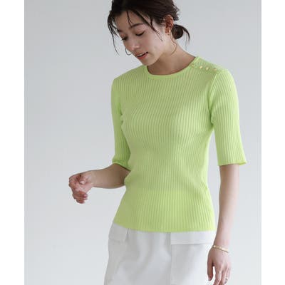 リネンタッチ肩ボタンニット ニット 5分丈