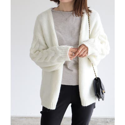 モヘアタッチ袖ケーブルニットカーディガン カーディガン モヘアタッチ
