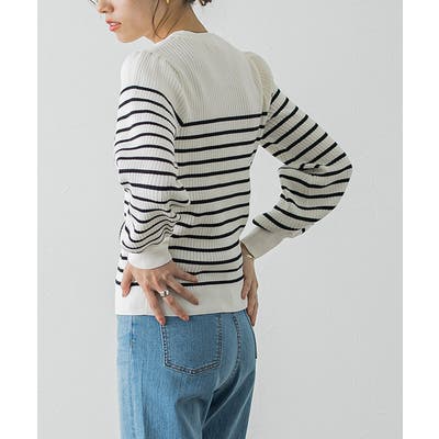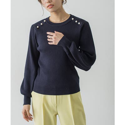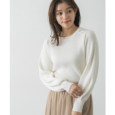 肩にパールボタンを施し顔周りを華やかに仕上げた着映えニット。ふんわりボリューム感のある袖デザインが、女性らしい印象に導きます。インでもアウトでも使える程良くゆとりのあるサイズ感が嬉しい◎