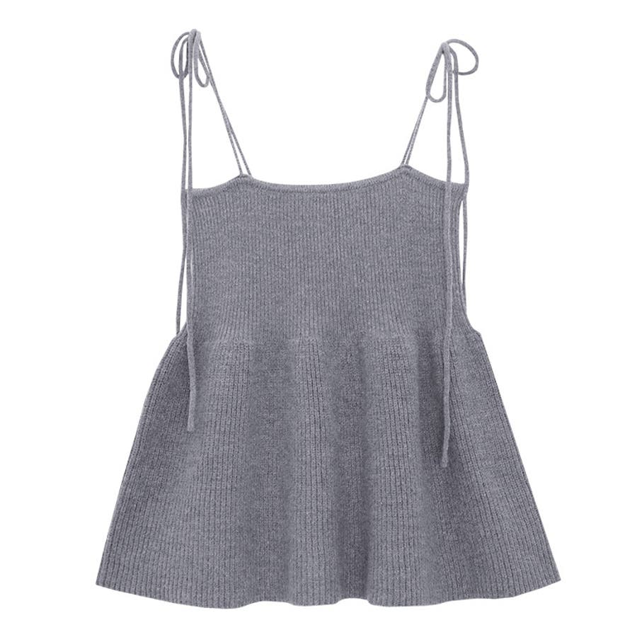 ペプラムシルエットが女性らしいニットビスチェ。見頃部分は程良くフィットしつつ、フレアシルエットが体型カバーもしてくれる優秀アイテム。肩紐は調節可能で、落ちてくる心配がないところも嬉しいポイント。お手持ちのTシャツやブラウスにレイヤリングするだけで旬のコーデが完成します。