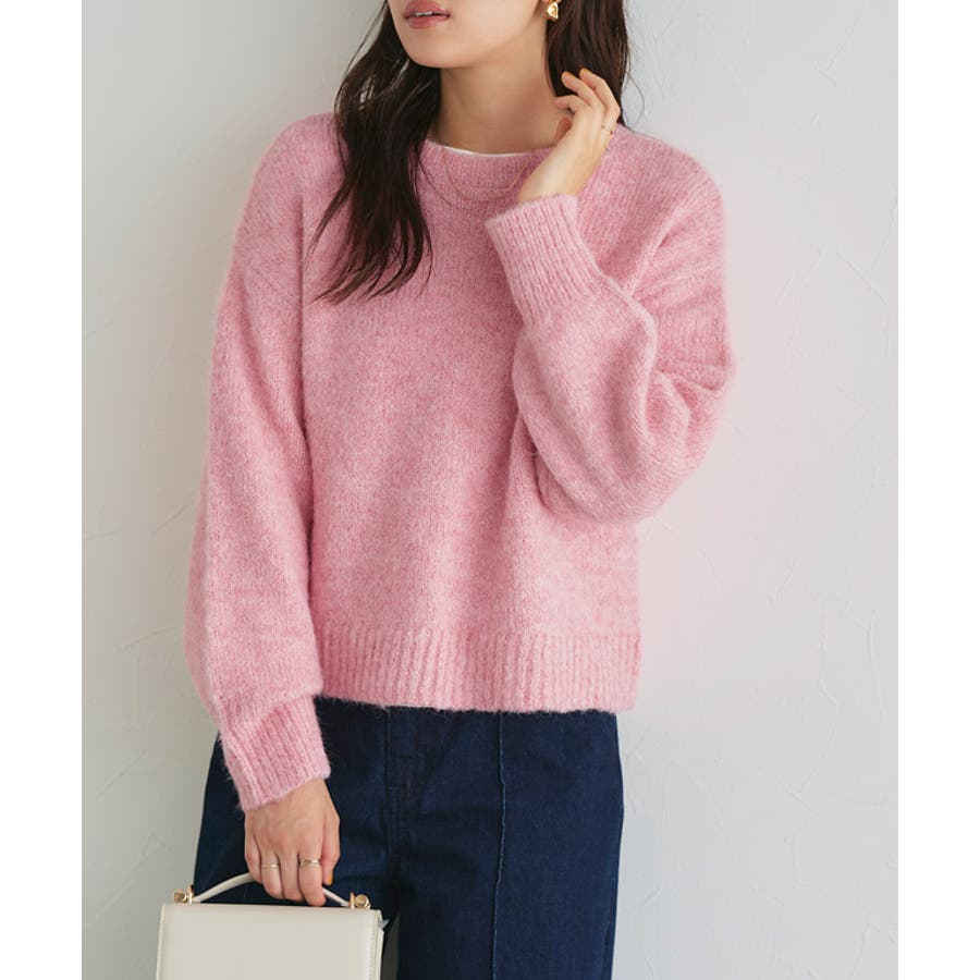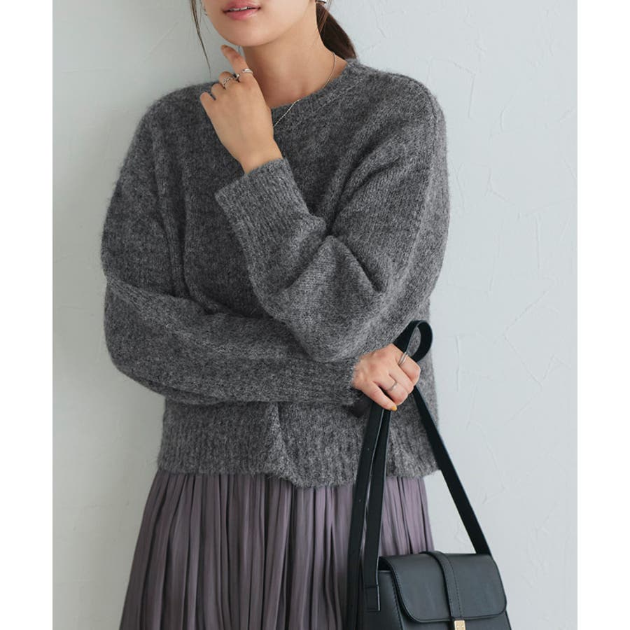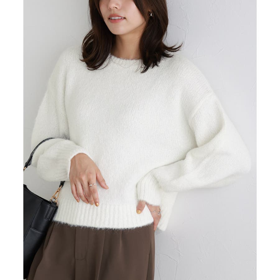 ふんわりやわらかな風合いのニット素材。程良い厚みはありながらも軽い着心地です。静電気防止加工を施しているので、気になる静電気を軽減してくれ、レイヤードスタイルも楽しめます◎