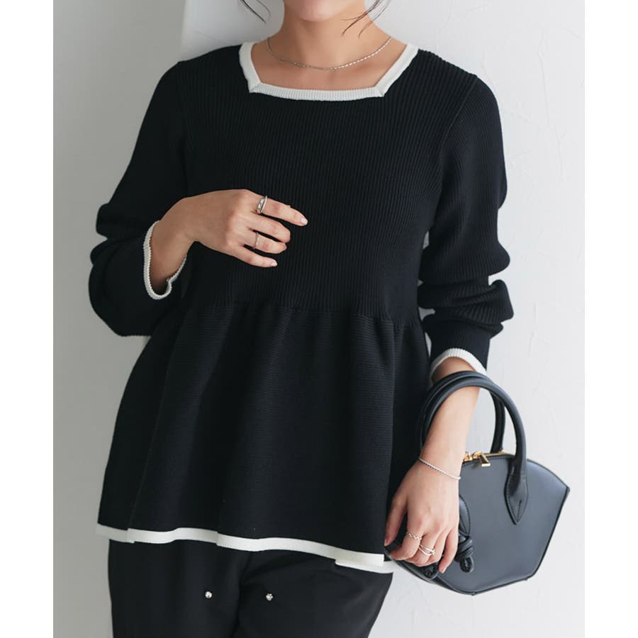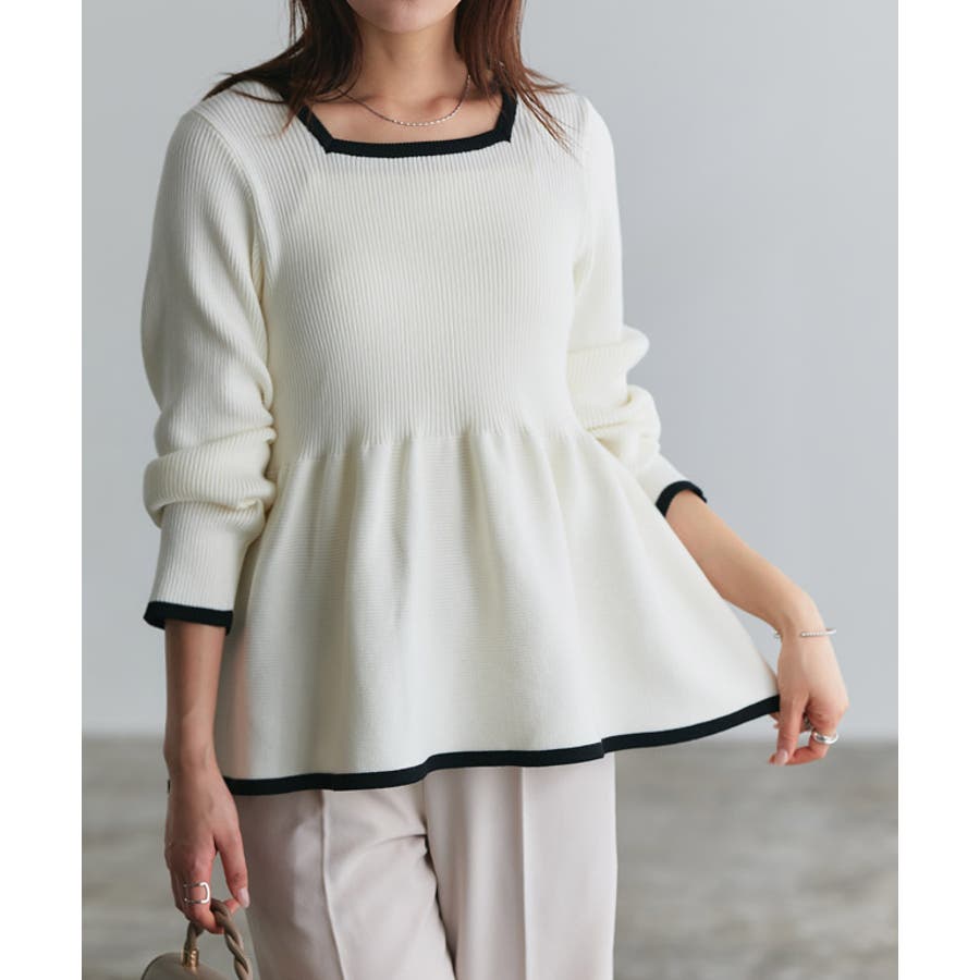 スクエアネックデザインとペプラムシルエットが女性らしい印象に導く着映えニット。目を惹く配色デザインがスタイリングに程良くアクセントをプラスしてくれます。ペプラムディテールでウエスト周りをカバーしつつ、フェミニンな雰囲気漂う一枚に仕上げました◎