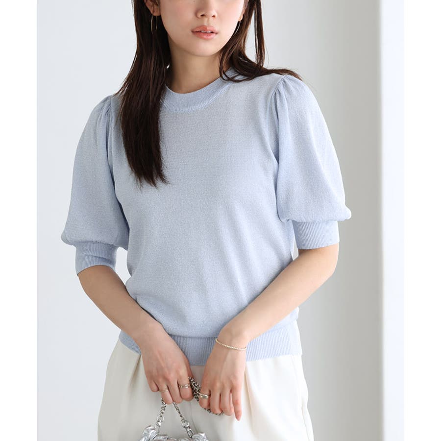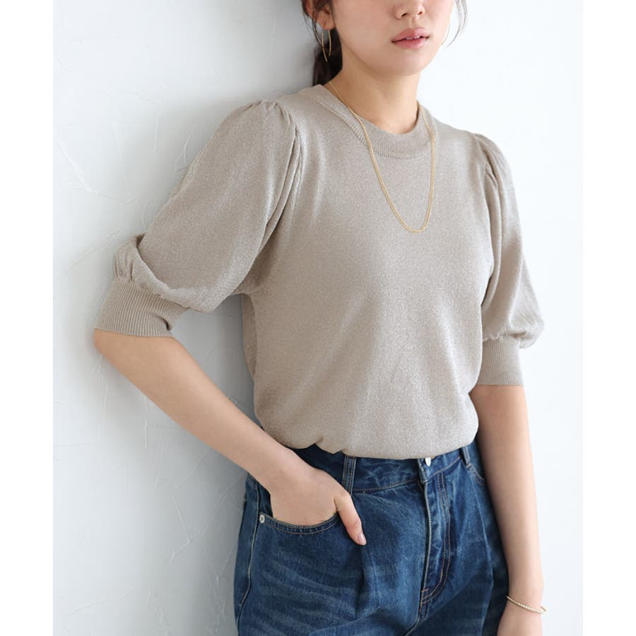 トレンドのラメ素材を使用したニットプルオーバー。細い糸を使用しており、チクチクしにくくさらっと快適な着心地です。