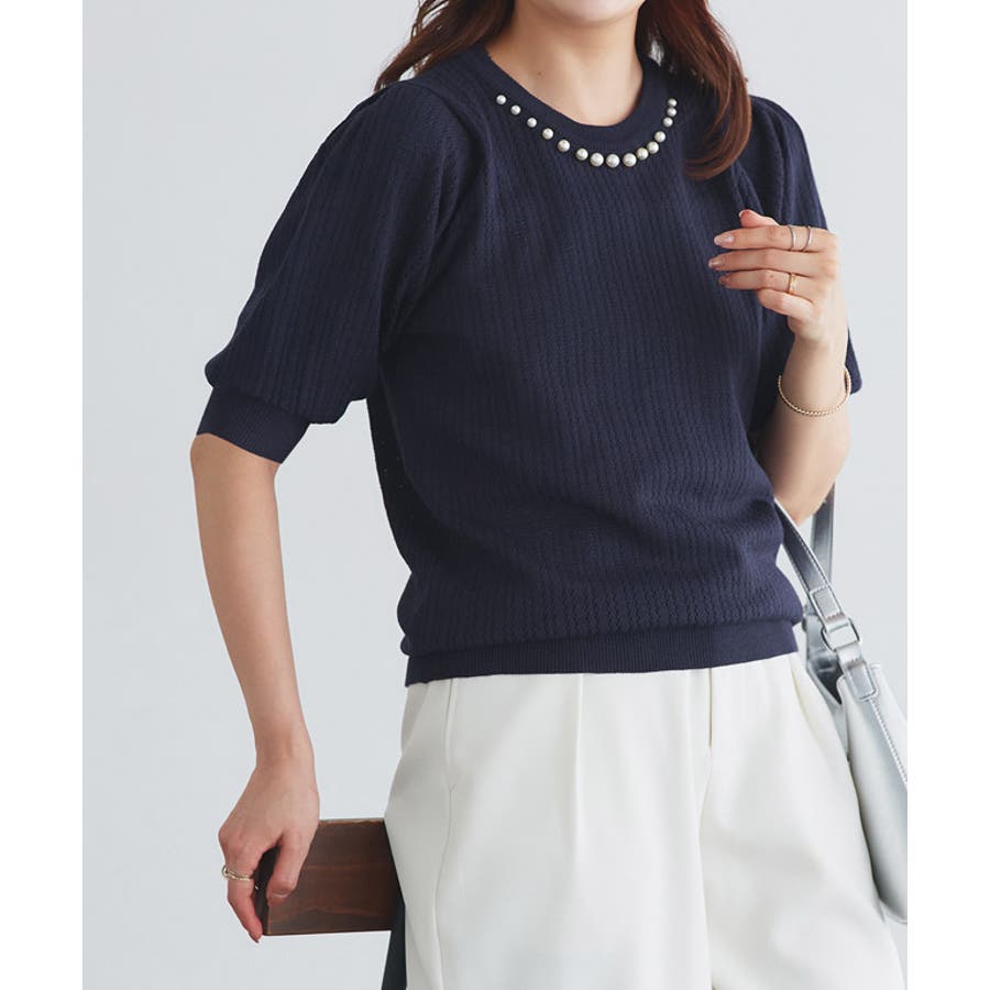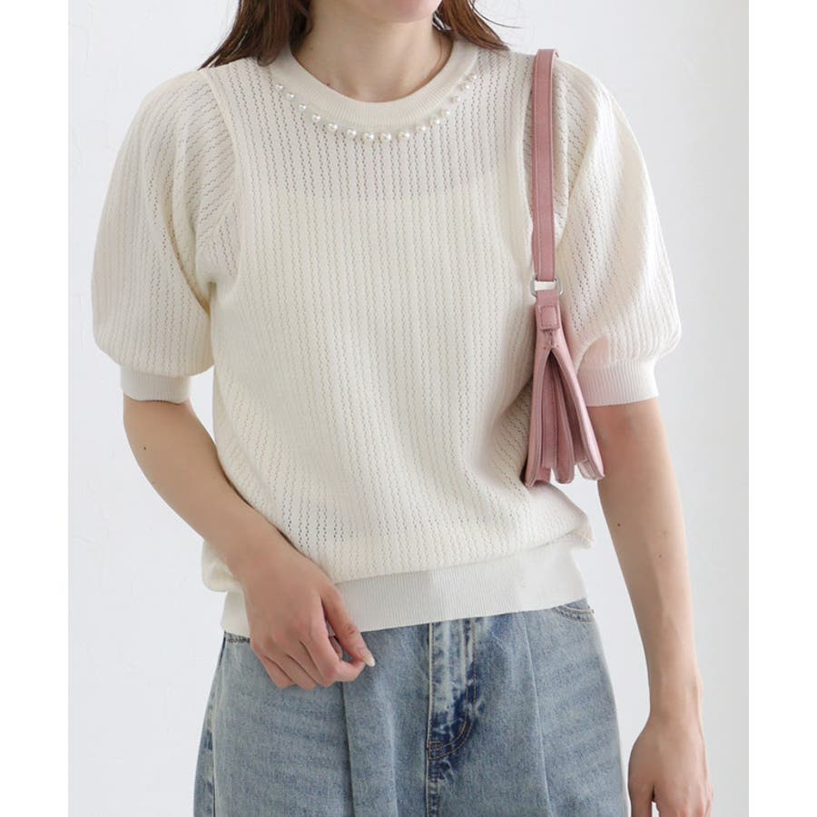 パールネックパフスリーブニット ニット パール