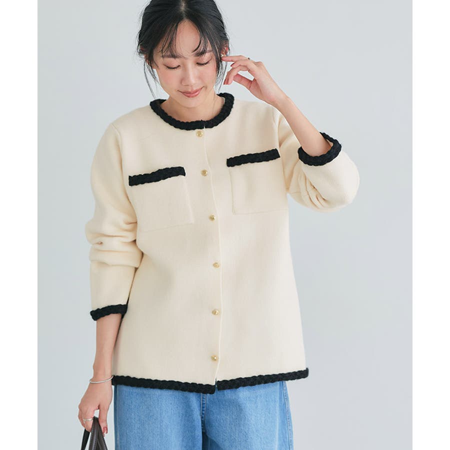 ゴールドボタン配色ニットジャケット ジャケット ニット