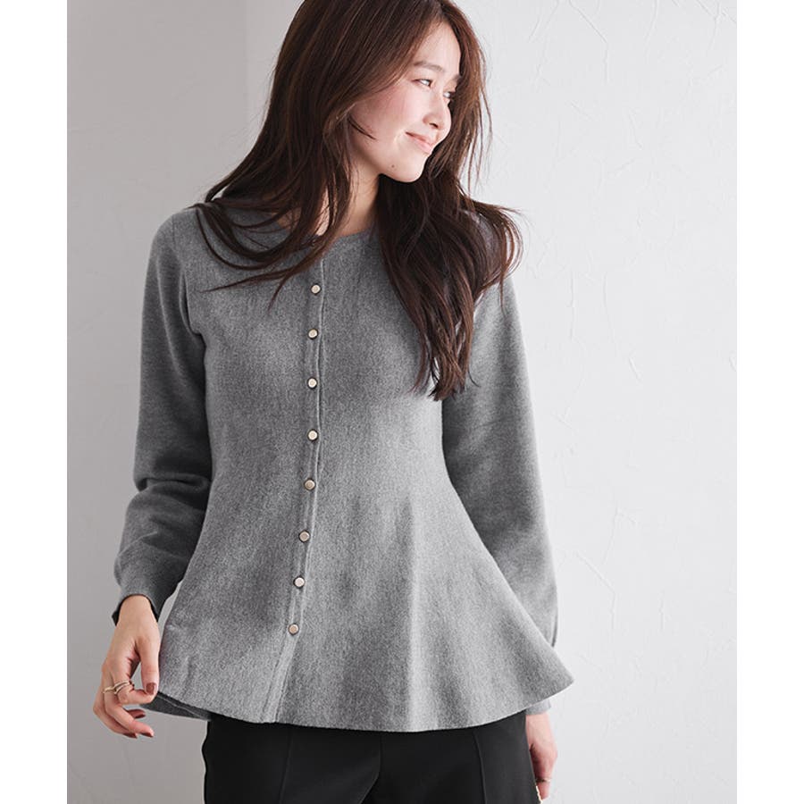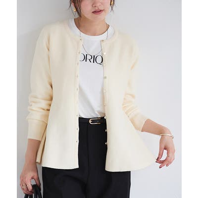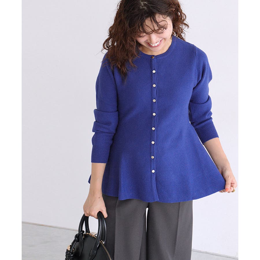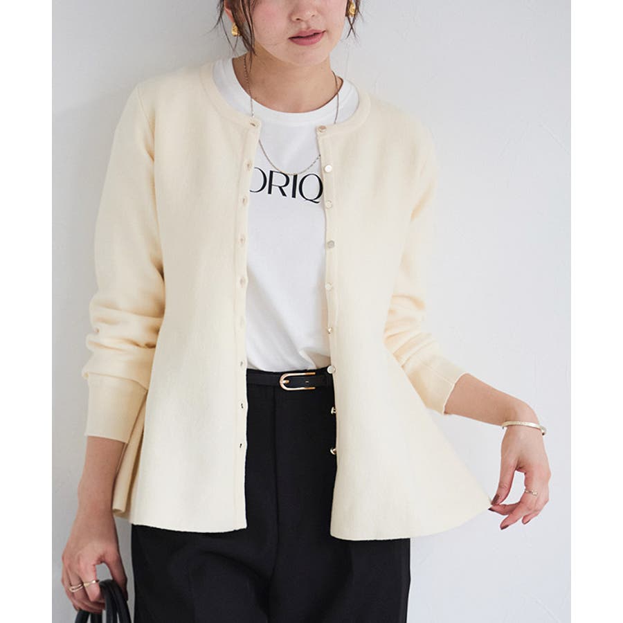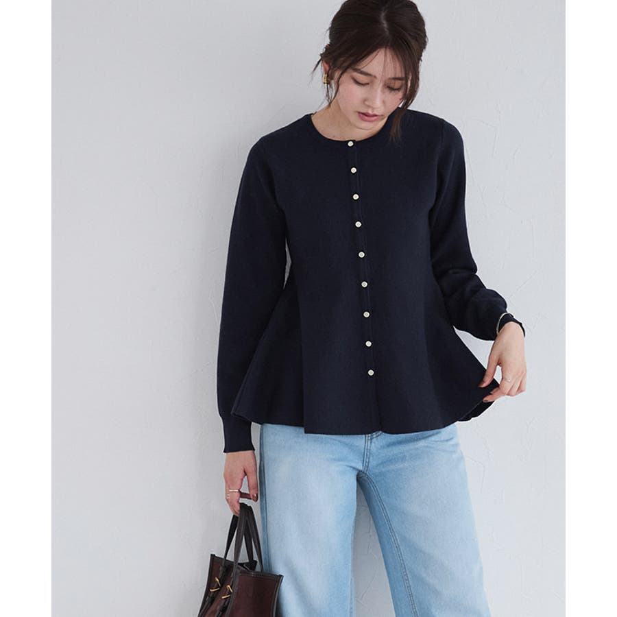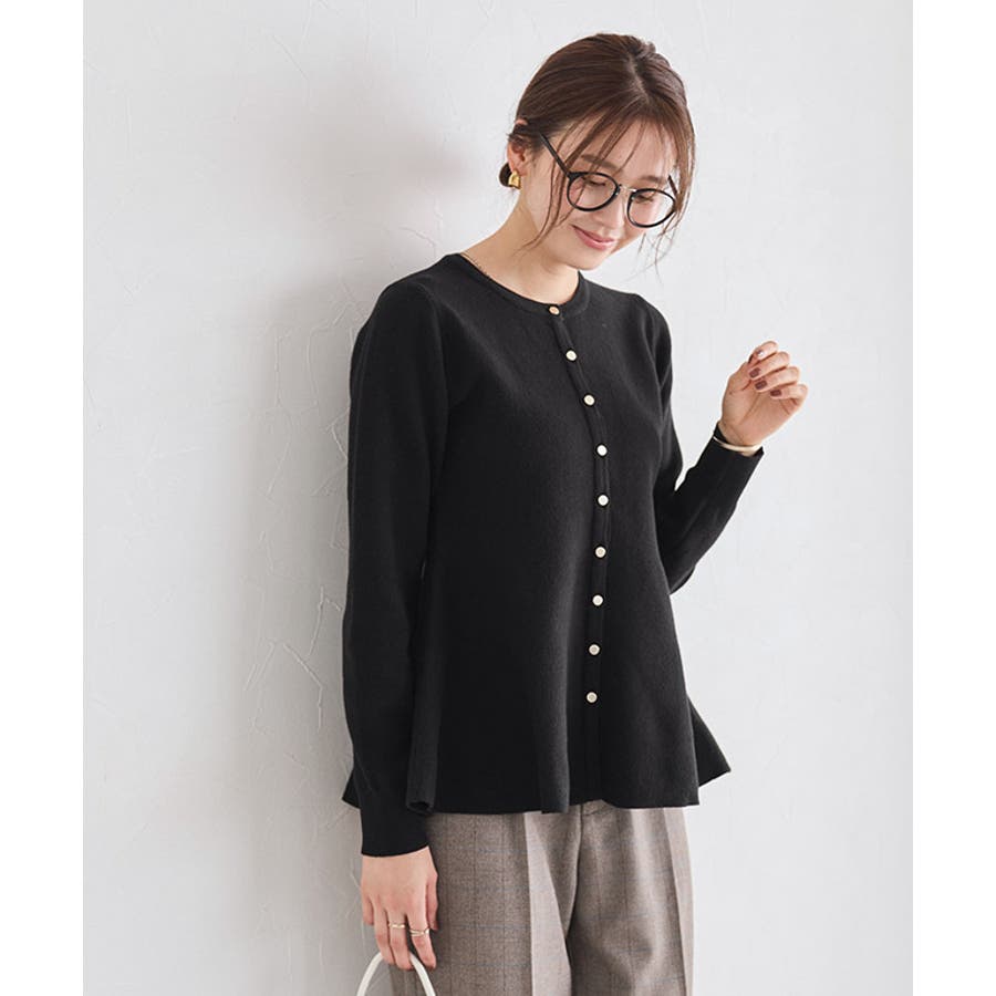 ペプラムシルエットが甘さを添えるニットカーディガン。ゴールドボタンが華やぎをプラスし、ふんわり広がるラインで体型をさりげなくカバー。バランスの良い丈感でトップスにも羽織りにもON/OFF問わず活躍する万能アイテムです。