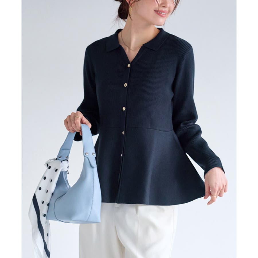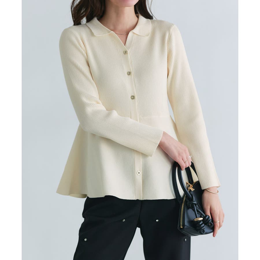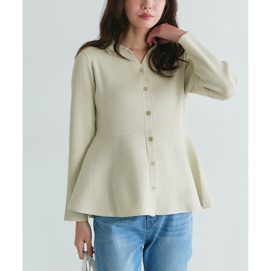 襟付きVネックぺプラムカーディガン カーディガン 襟