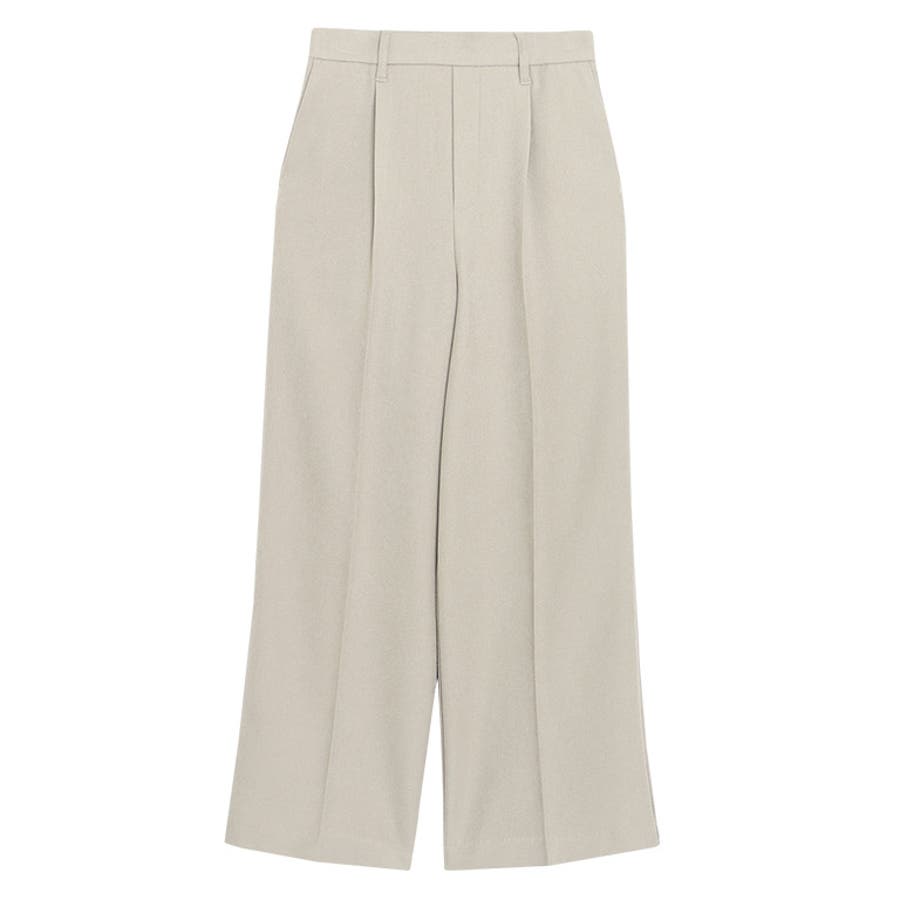 すとんと落ちるシルエットで脚のラインを拾いにくく、綺麗なシルエットを演出します。ウエストに施されたタックとセンタープレスデザインで全体をすっきりとキレイめな印象に。シンプルでON/OFF問わず着用頂けるアイテムです。