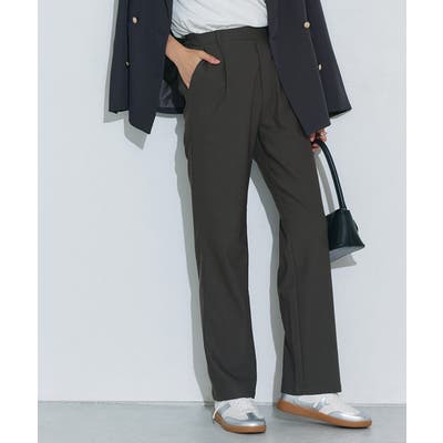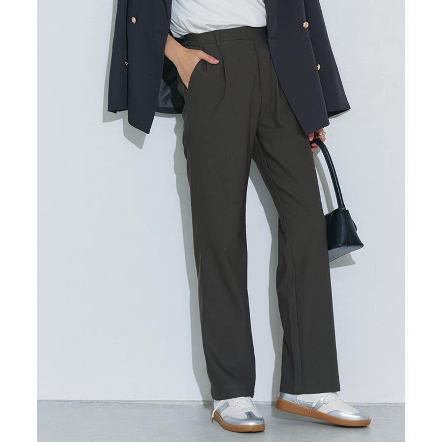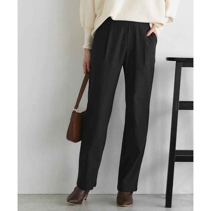 フロントタックや後ろギャザーで気になるシルエットはカバーしつつ、すっきり見えするストレートライン。フロントのウエストはすっきり見せ、後ろはゴム仕様で快適な穿き心地に。トレンドのペプラムトップスとの相性も良く、きれいめからカジュアルまで幅広く着まわせます。