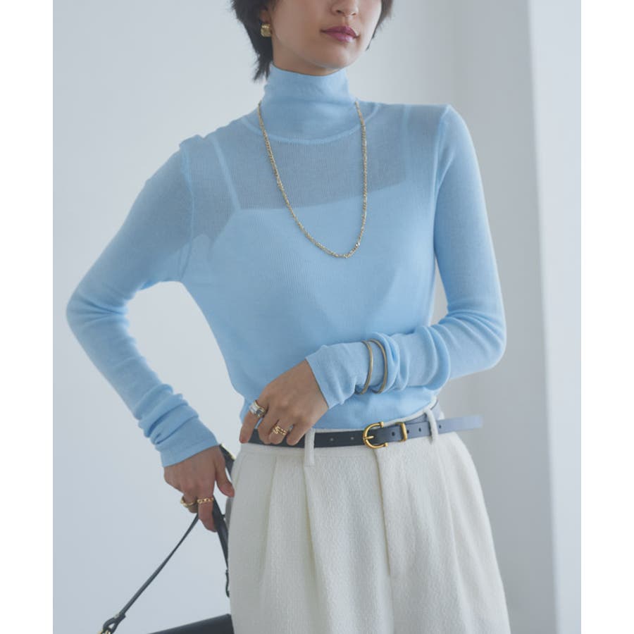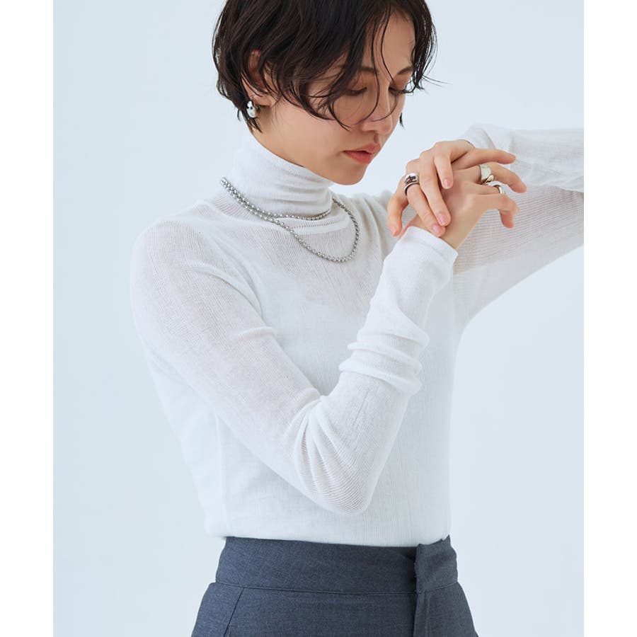 体のラインを拾いすぎず、優しくフィットするシルエット。長めの袖が自然にクシュっとなり、一枚で着てもこなれ感のあるデザインです。ニットやシャツの袖口から覗かせてアクセント使いにもおすすめのアイテム。