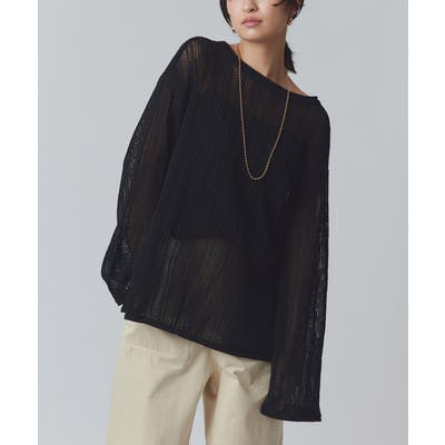 ストライプ柄に編立てたシアー素材が魅力のニットトップス。ゆるっとなルーズなサイジングとワイドスリーブが抜け感たっぷりの印象を与えてくれるデザインです。サイドスリットでアクセントをプラスしました。