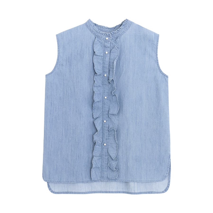 シャンブレーフリルノースリーブブラウス ブラウス フリル