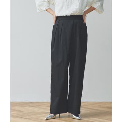 ウエストに施されたタックとラップデザインがポイントになったワイドパンツ。たっぷりと用尺をとったシルエットは、脚のラインを拾わずゆったりとした穿き心地を叶えます。ハイウエストデザインでメリハリのあるアクセントをプラス。後ろはゴム仕様でストレスフリーに仕上げました。