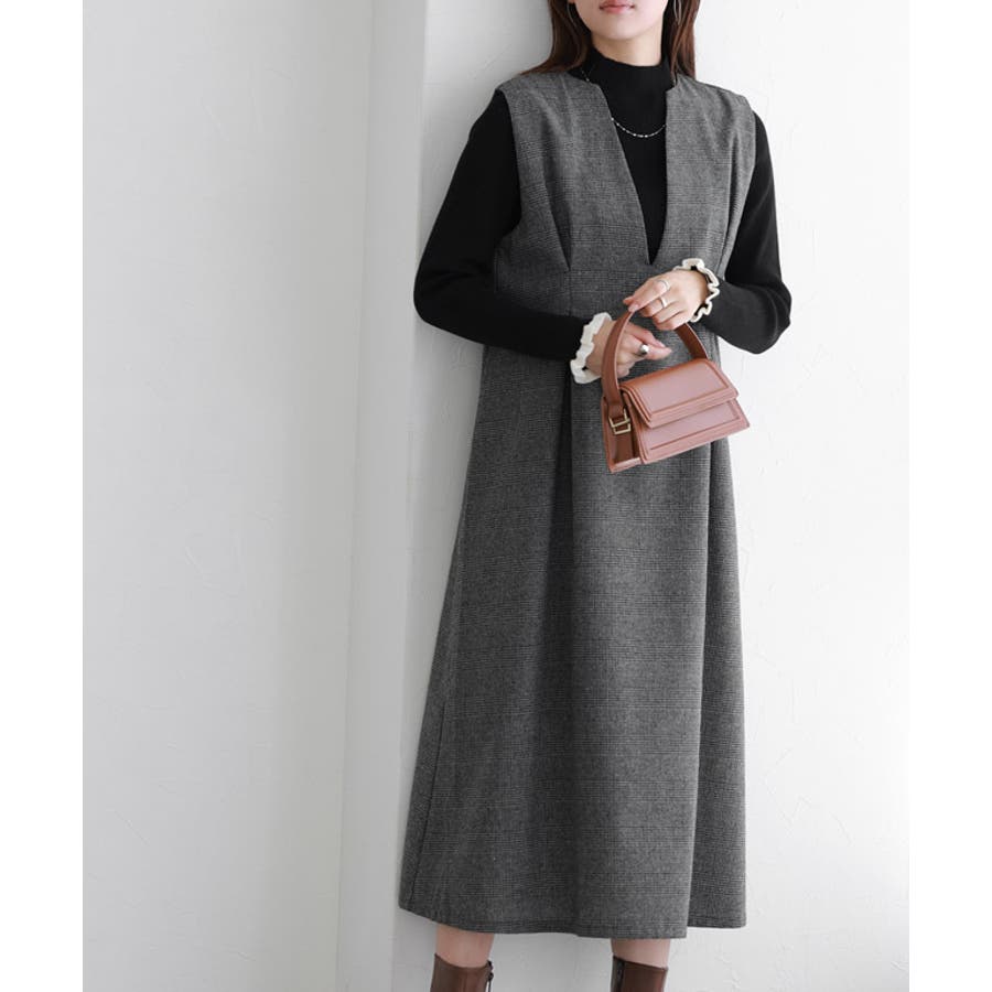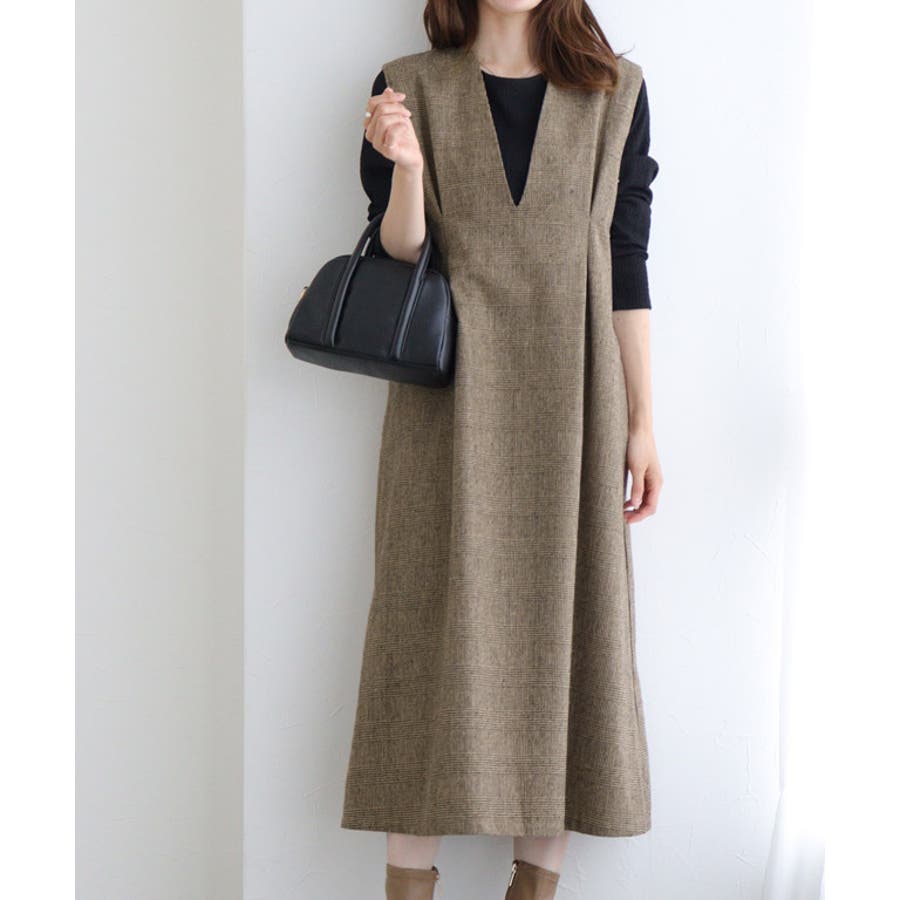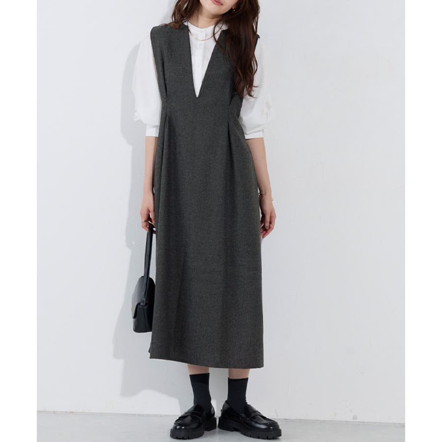 ウエストに施したタックデザインと裾に向かって程良く広がるフレアラインが、女性らしい印象に導くジャンパースカート。さり気なく体型カバーしてくれるところも嬉しいポイントです。深めのキーネックデザインで抜け感をプラス。カットソーやブラウス、ニットなどインナーを選ばず着映えスタイルが完成する優秀な一枚です。