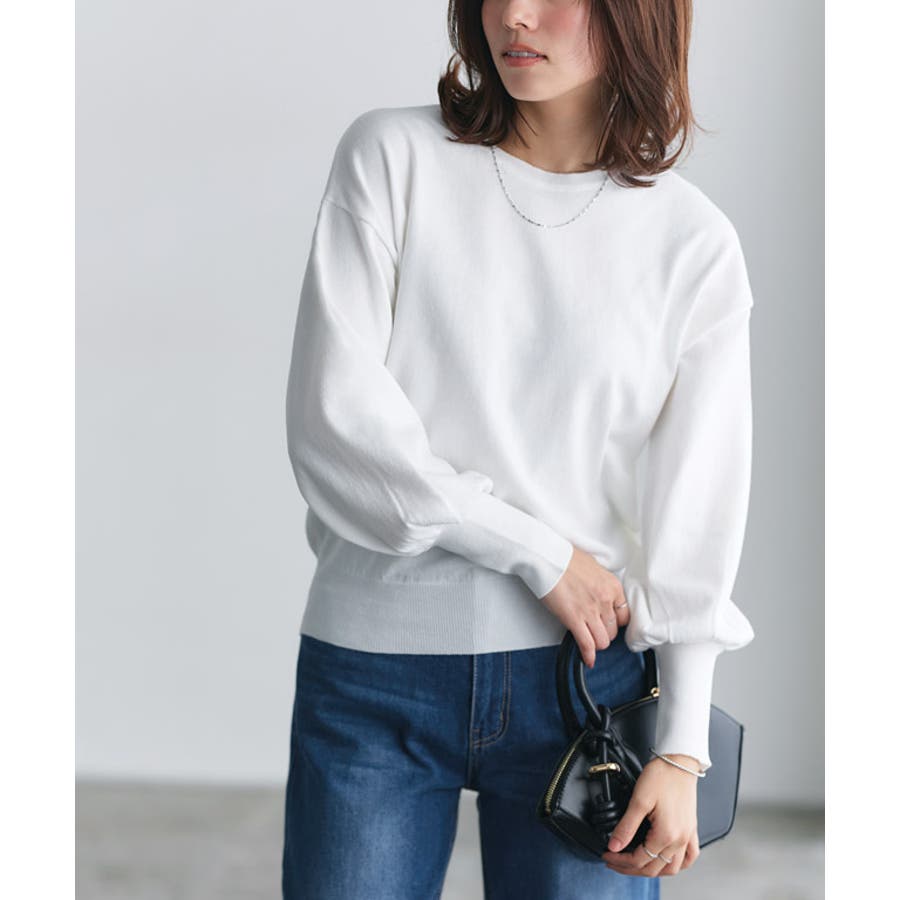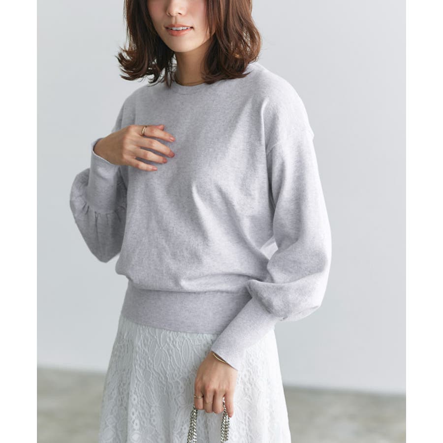 袖のボリュームが魅力のデザイン。シンプルながらもアクセントになるシルエットが、ベーシックスタイルに彩りをプラスします。袖口のリブを長めにすることでメリハリが生まれ、袖リブ上にギャザー入れることで立体感を演出。