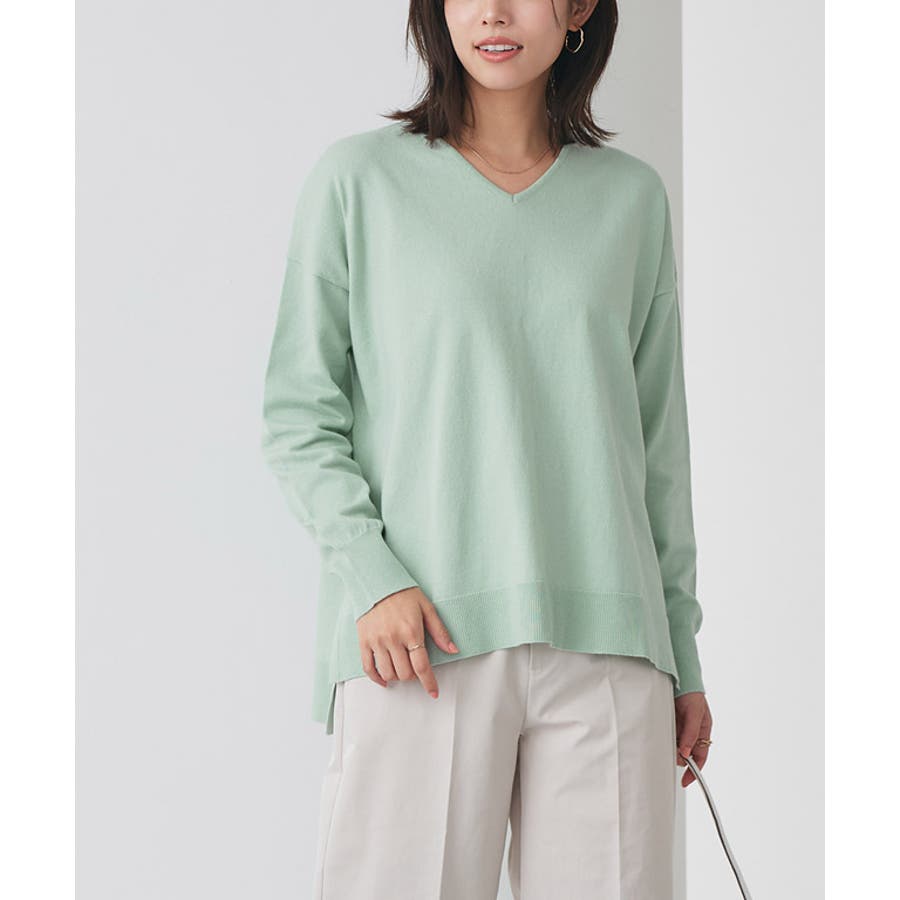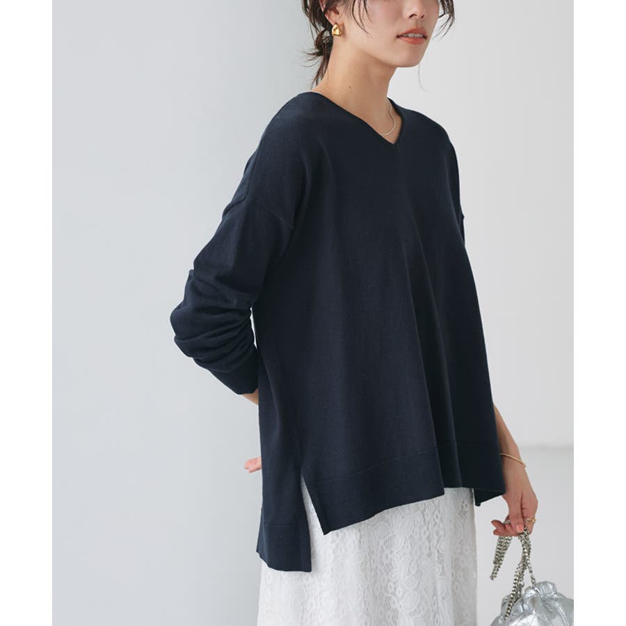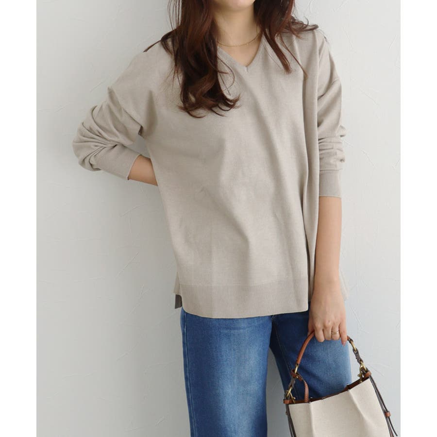 すっきり見えするVネックと、上品な印象のボートネックの2タイプ展開。ゆったりとしたオーバーシルエットで体型カバーしつつ、大人のこなれた雰囲気に仕上げてくれます。シンプルなデザインなのでボトムスを選ばず着回しやすいところも魅力の一つ。