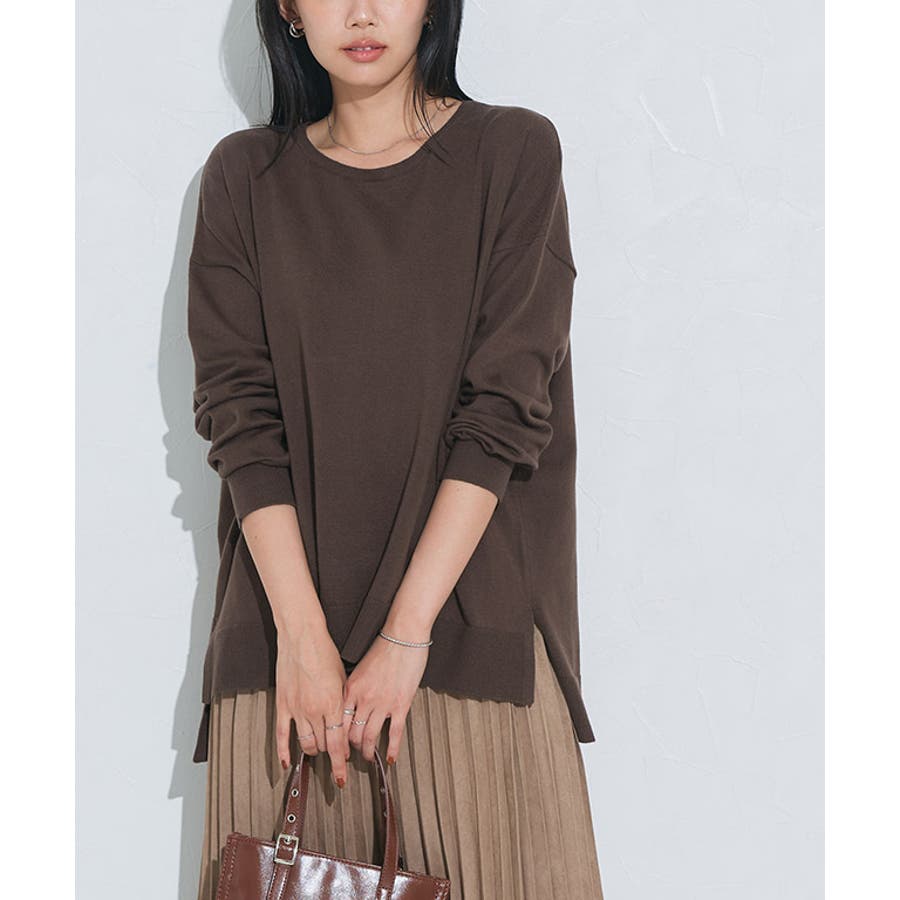 肌なじみのいい生地感が魅力のコットンミックス素材を使用したニット。程良くやわらかさのある風合いで、通年着用できるところも嬉しいポイント。ウォッシャブルなので取り扱いも簡単です◎