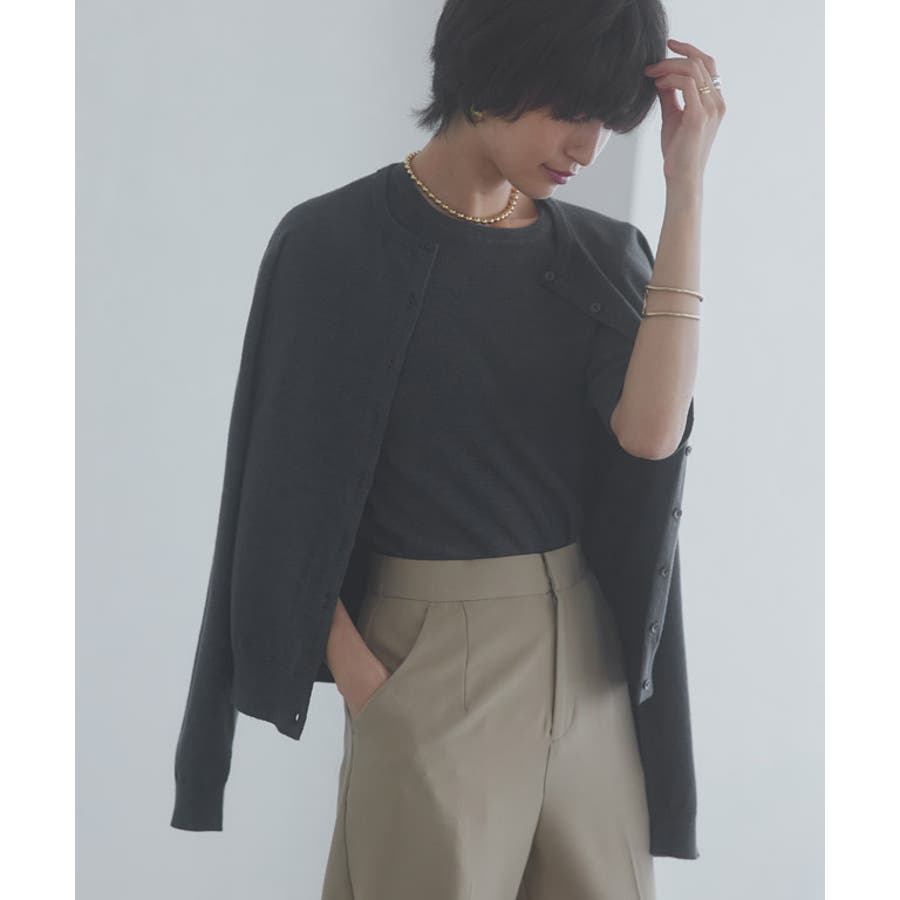 デザインを可能な限りシンプルに仕上げました。同素材の半袖ニットとのバランスも考えた一枚なので、アンサンブル着用もオススメです。