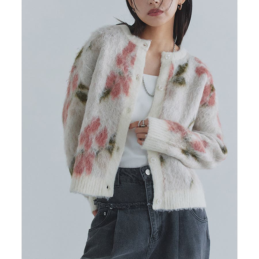 2way花柄シャギーニットカーディガン カーディガン ニット