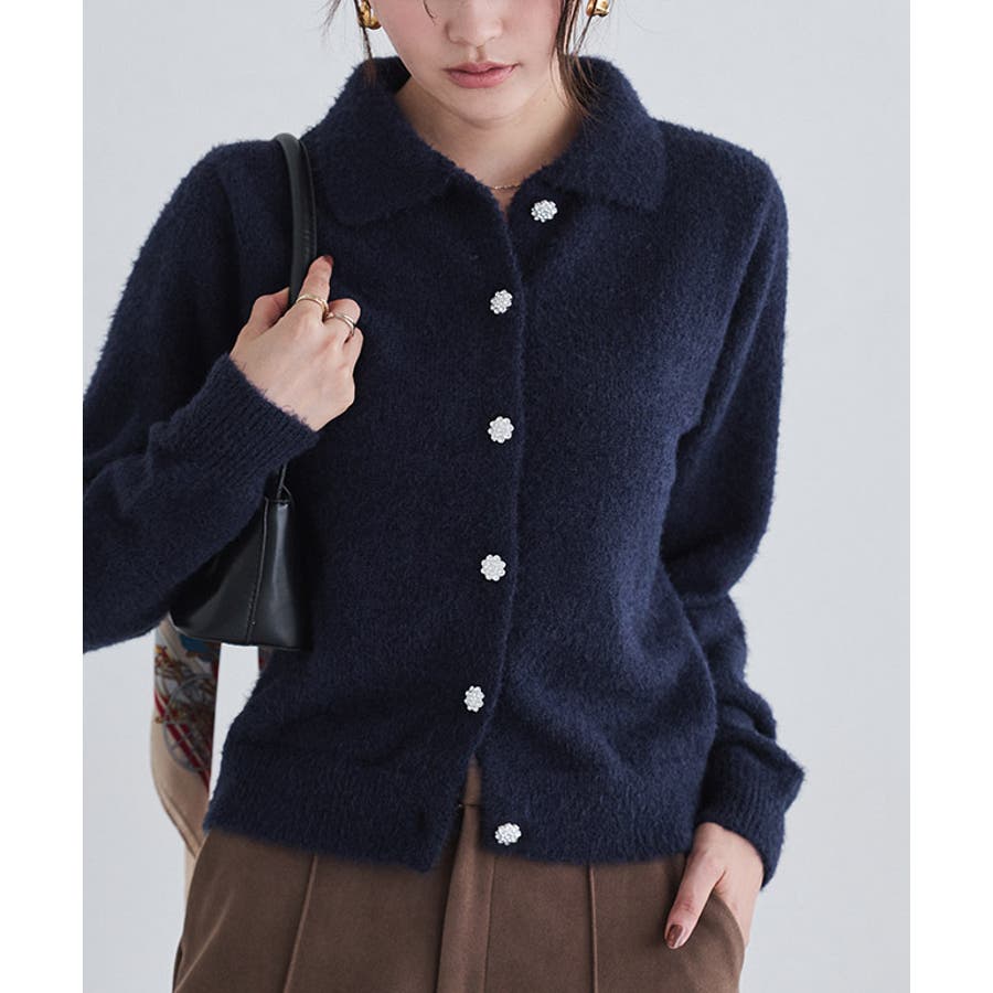トレンド感のあるポロデザインに、ビジューボタンが華やかさをプラス。 シンプルながら、一枚で主役になるアイテムです。 カーディガンとして羽織ることもでき、着回し力も抜群。 ON/OFF問わず活躍する、上品でフェミニンな一枚です。
