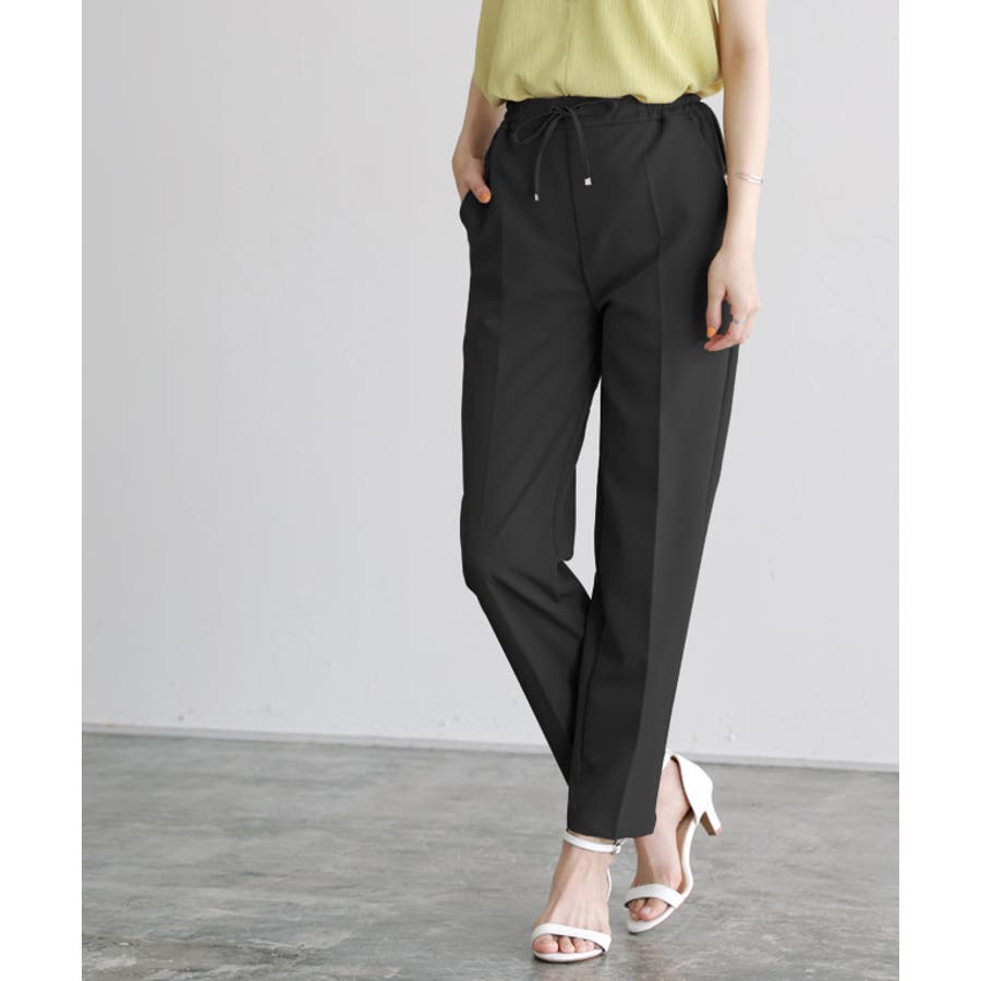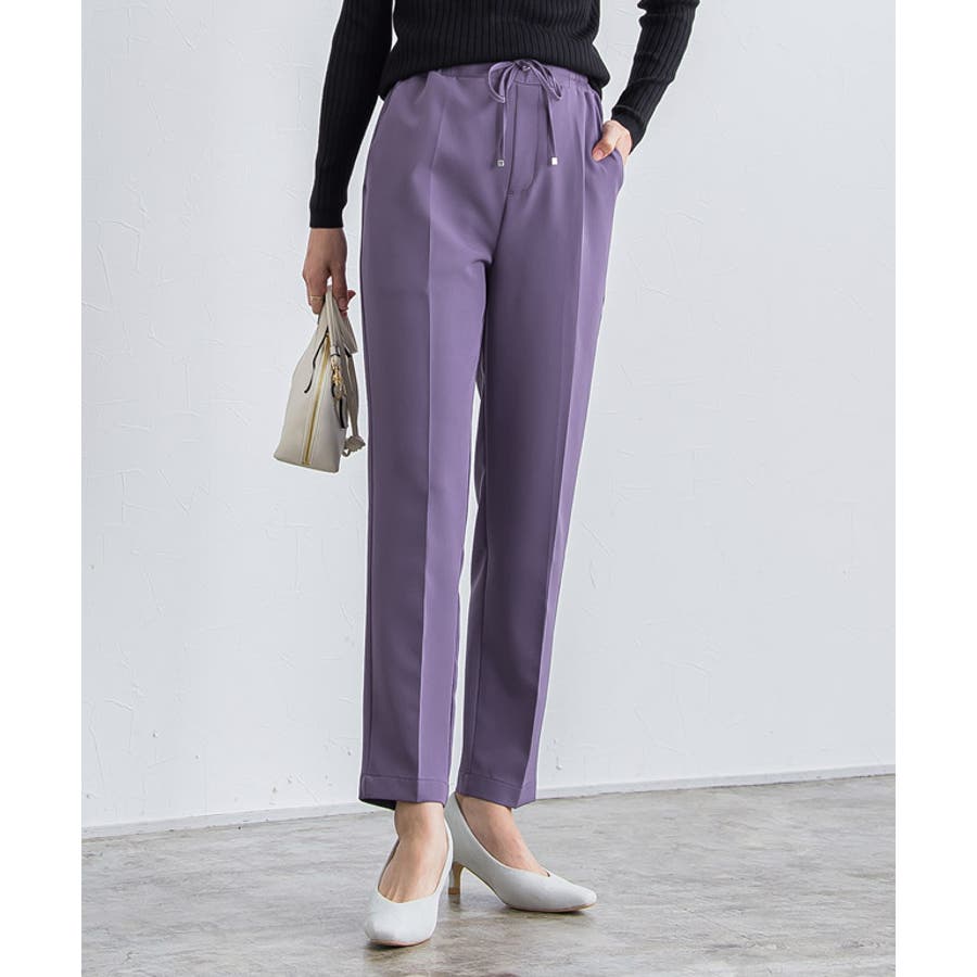程よい厚みで高見えするのに、伸縮性があり楽な穿き心地のストレッチ素材を使用。シワになりにくくお手入れも簡単です。ウエストゴム入りで窮屈感もありません◎