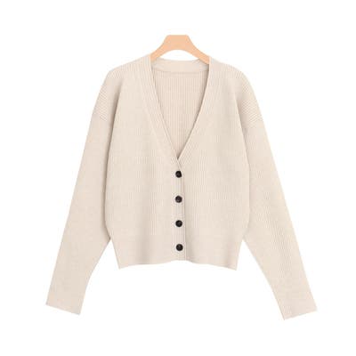 【RASW】クロップド丈リブニットカーディガン カーディガン