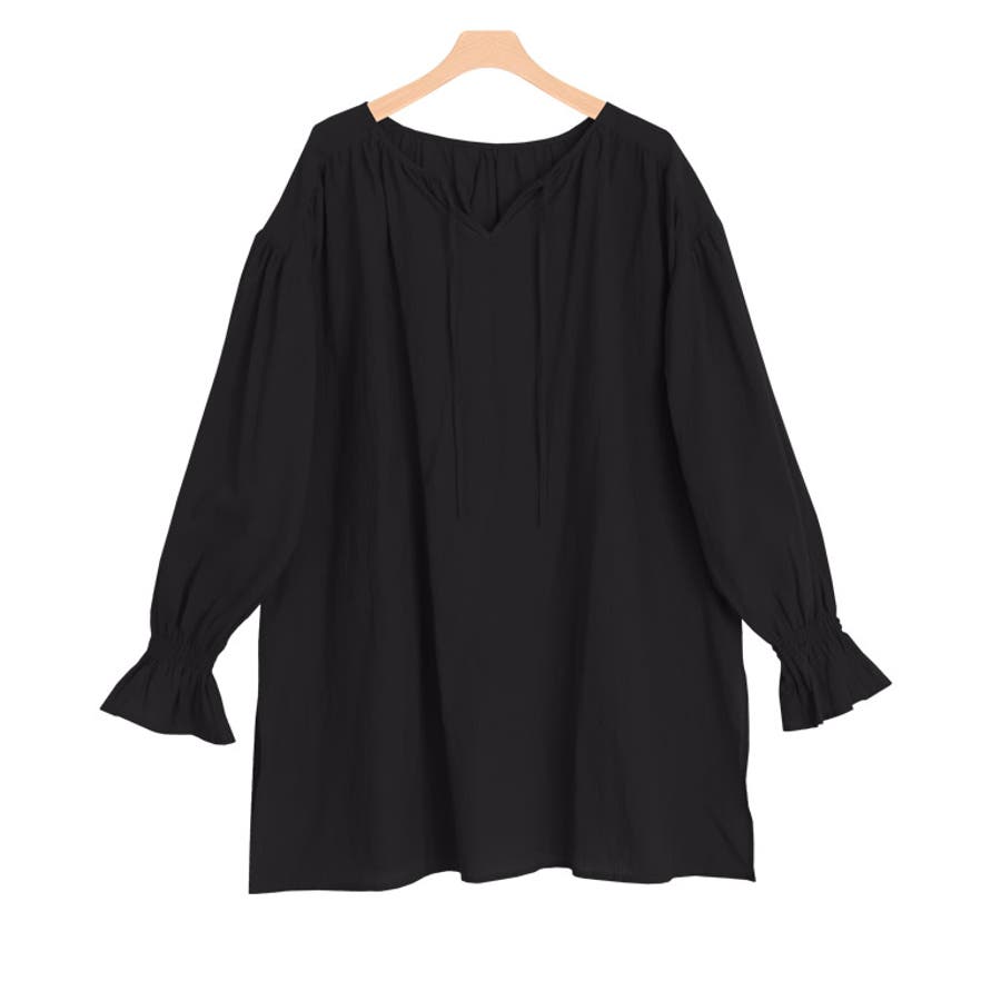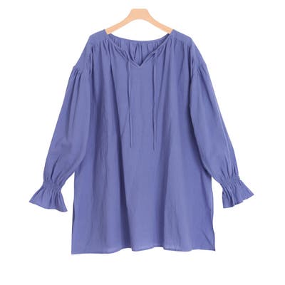 たっぷりとギャザーを寄せたボリューム感が、ふんわりと軽やかなシルエットを作り出します。すっきりと見えるVネックラインに紐をあえて垂らすことで抜け感のあるスタイリングに。裾に大胆にスリットを入れることで軽やかな動きが出ます。キャンディスリーブでこなれた雰囲気の中にも女性らしさをプラスしました。