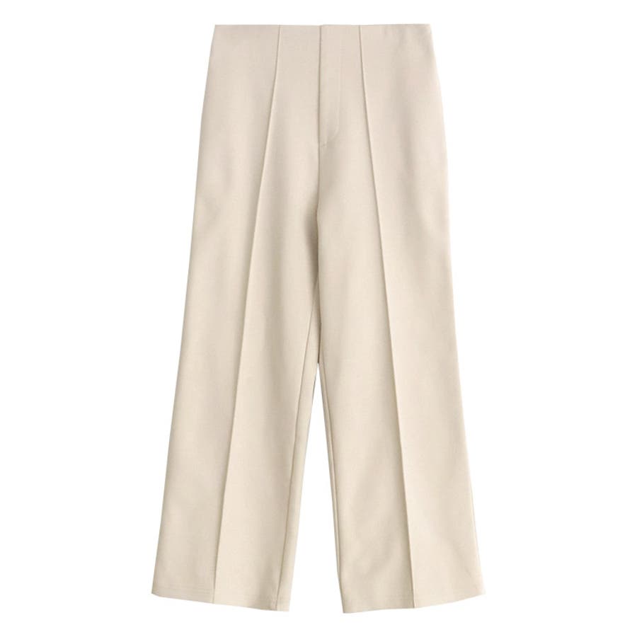 ベルト切り替えを無くし、ウエストから施されたピンタックデザインですっきりとした印象に仕上げました。すとんとしたボックスシルエットでオンオフ問わず着用できるアイテムです。