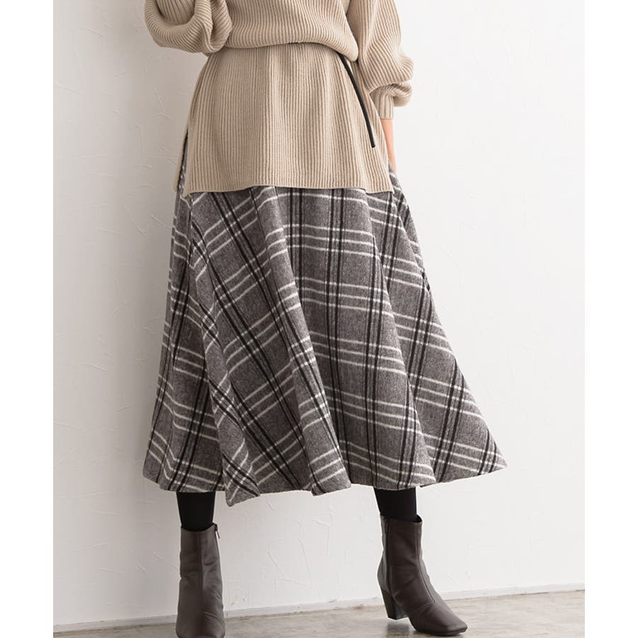 ウールタッチチェックフレアスカート スカート フレアスカート チェックスカート