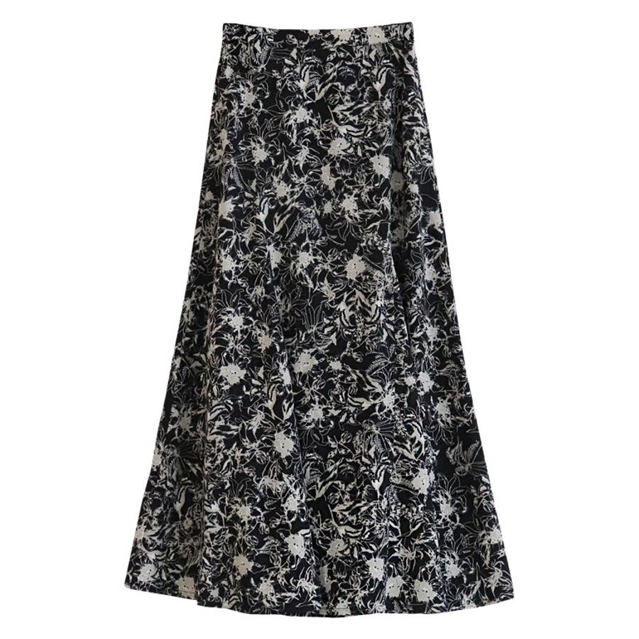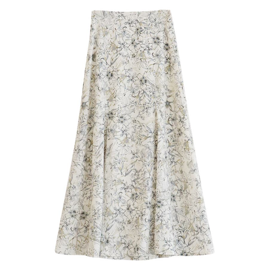 ラインフラワーセミフレアスカート スカート ラインフラワー 花柄 セミフレア