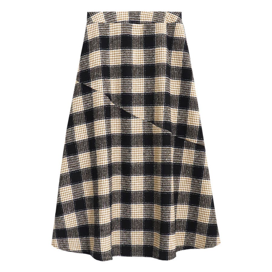 ウール混チェック柄フレアスカート スカート フレア