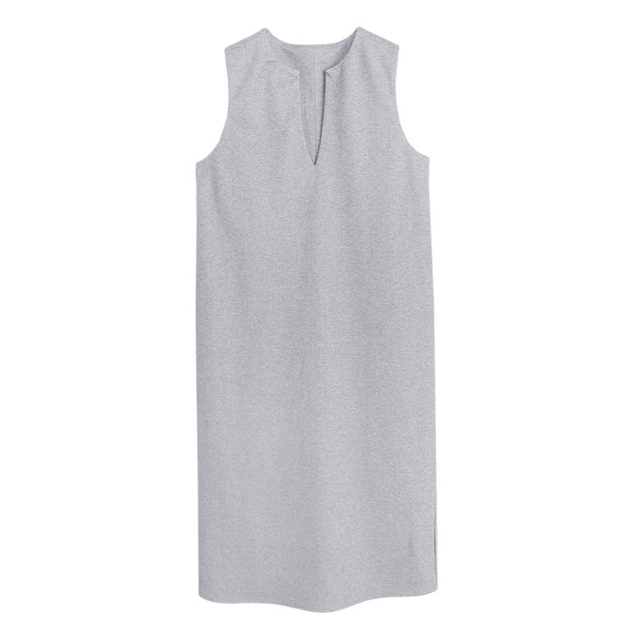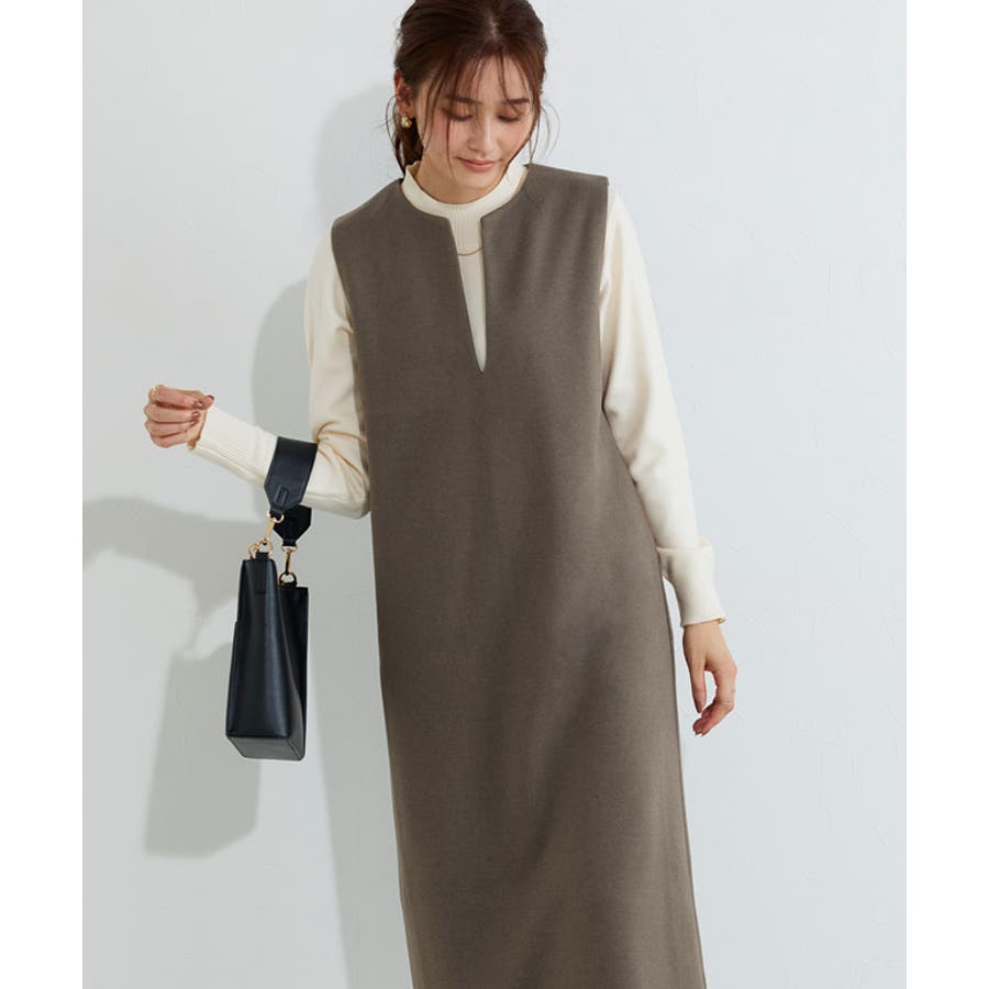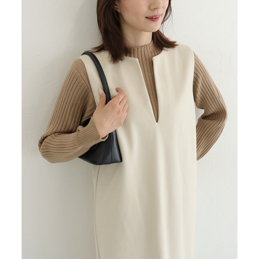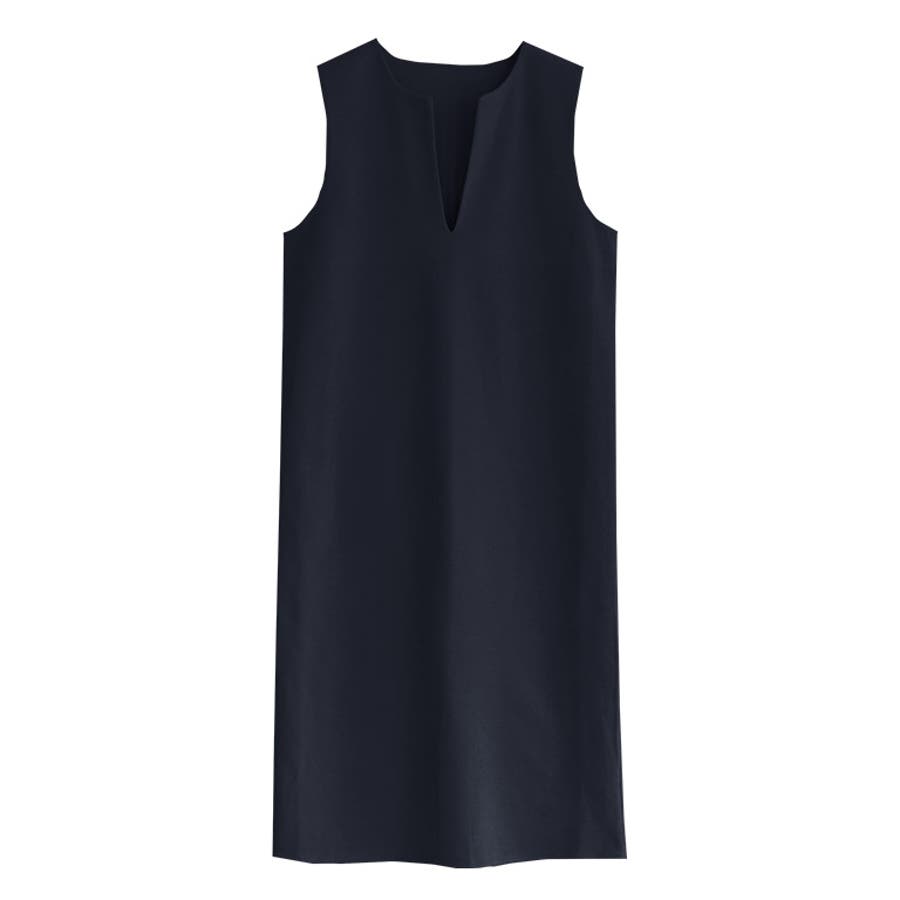 すっきりとした深Vネックは、女性らしいエレガントな着こなしをアシストします。シンプルなすっきりとしたシルエットで体のラインを拾いすぎない点も魅力の一つです。